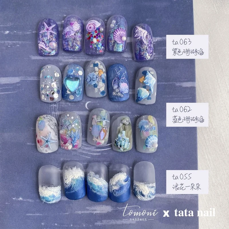 2021 новые модные японские 5D рельефные наклейки для дизайна ногтей синий спрей Океанский пляж дизайнерские акриловые клейкие Наклейки Инструменты для маникюра