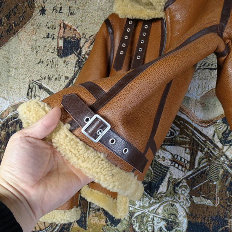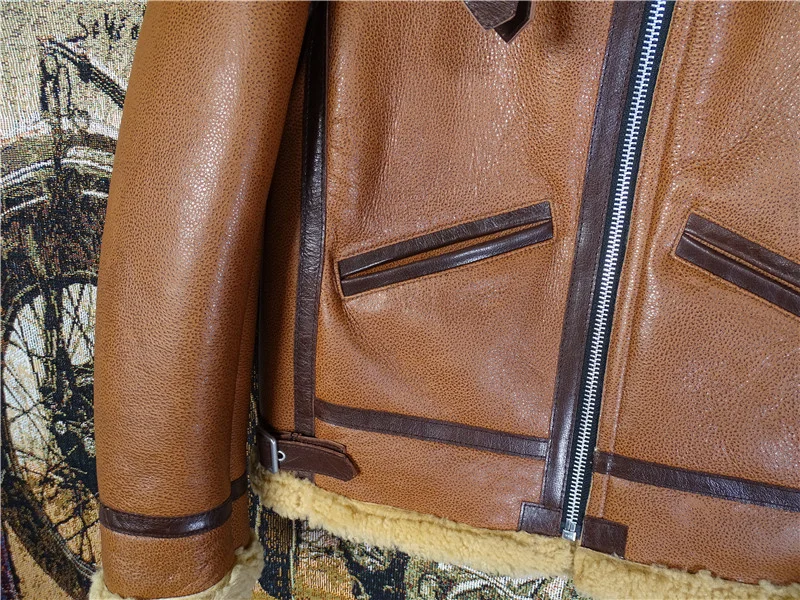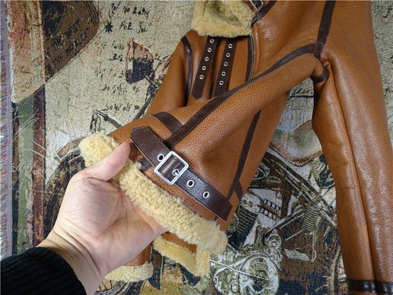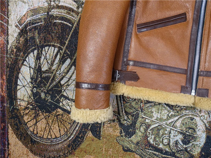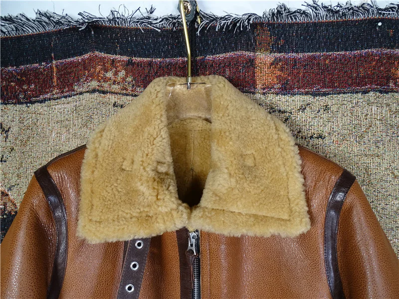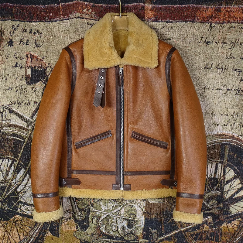 Куртка-бомбер коричневая из натуральной овчины, модель 2021 г., 4XL, в стиле милитари, русская зимняя теплая куртка, размера плюс