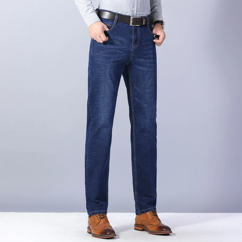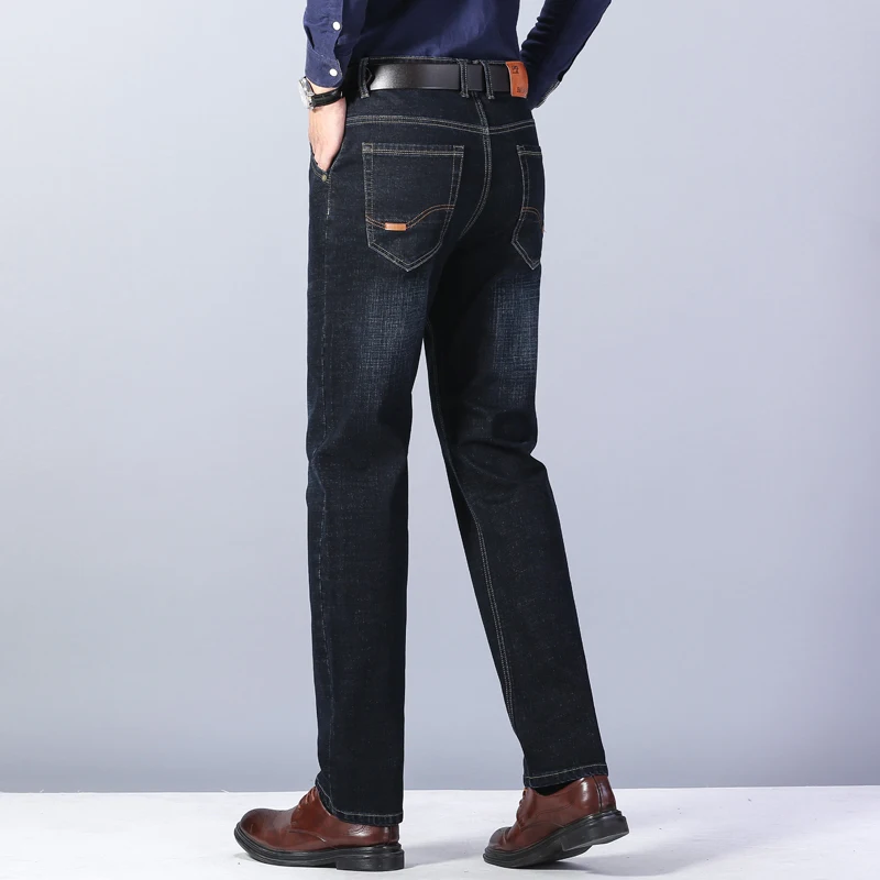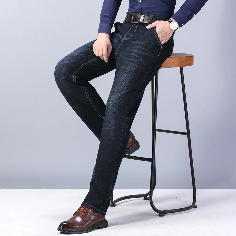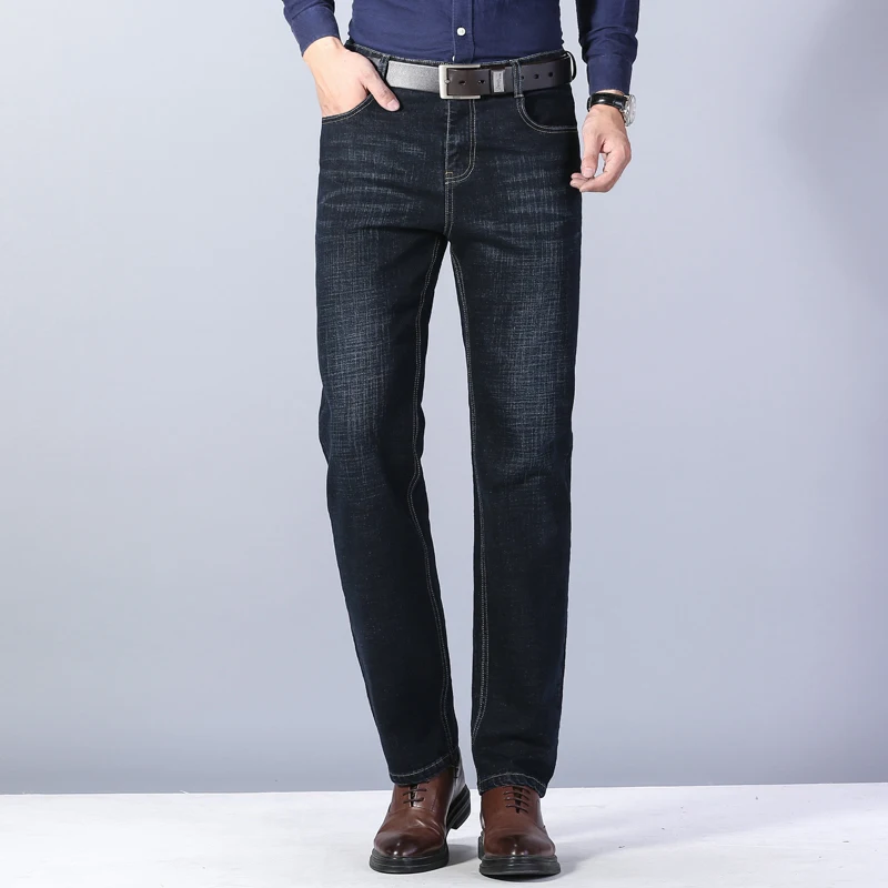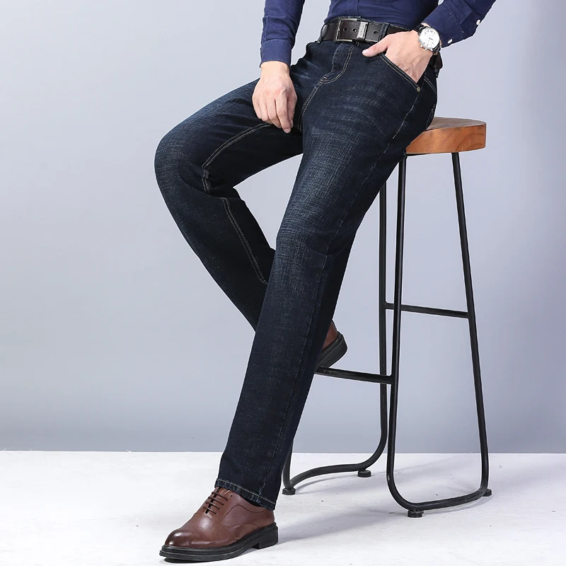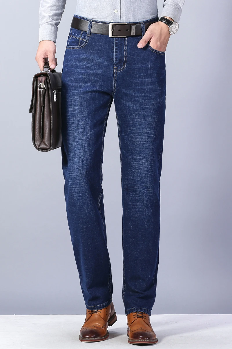 Джинсы мужские стрейчевые, классические модные брюки из денима, всесезонные, хлопковые брюки в деловом стиле, повседневные штаны