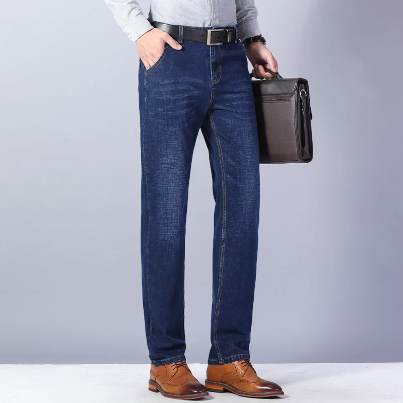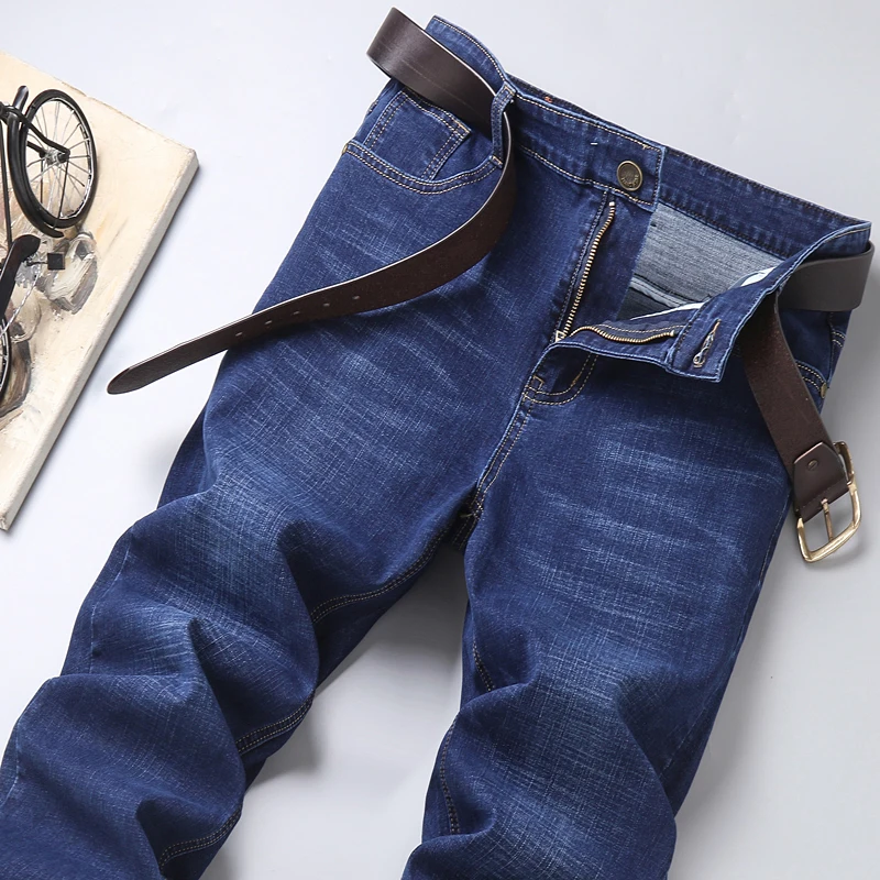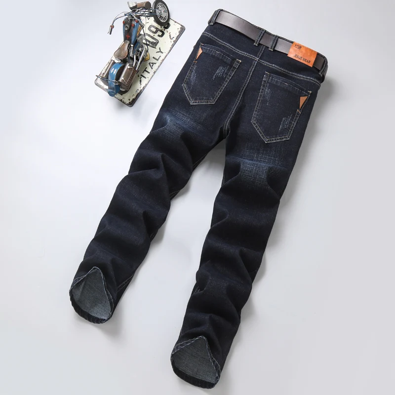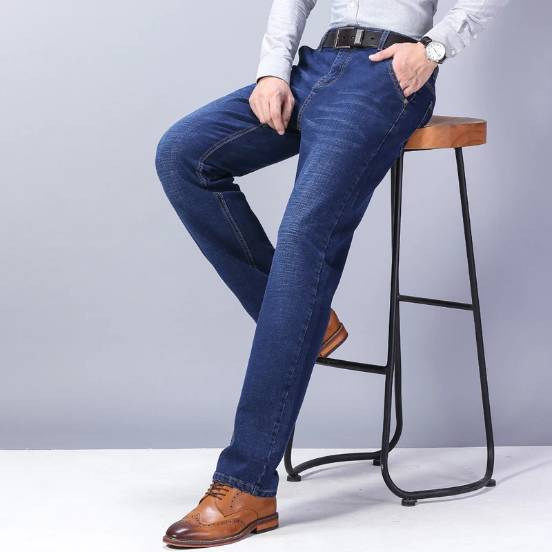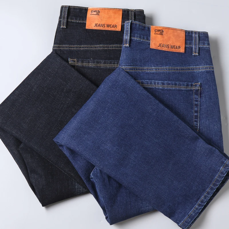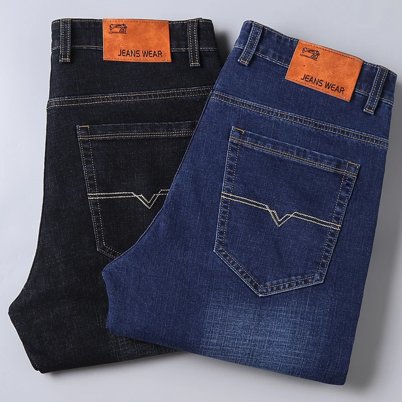 Джинсы мужские стрейчевые, классические модные брюки из денима, всесезонные, хлопковые брюки в деловом стиле, повседневные штаны