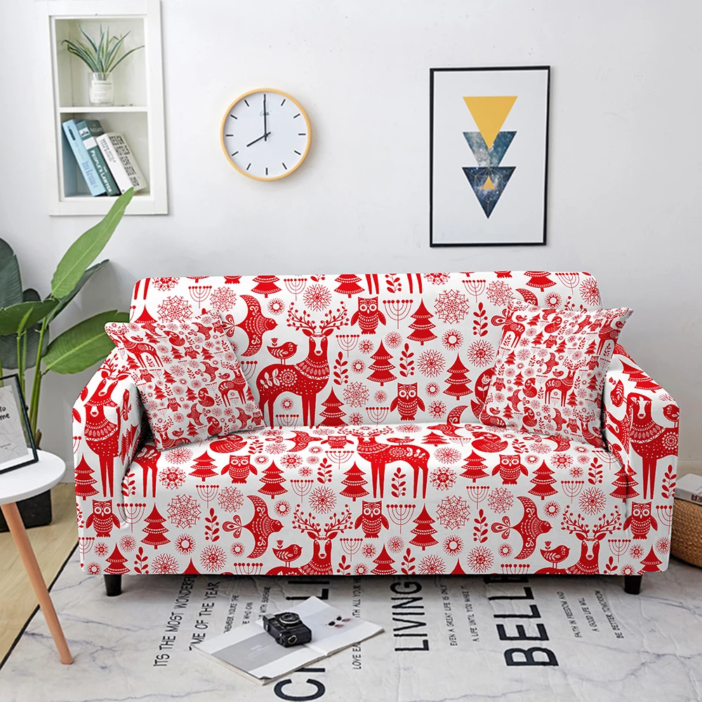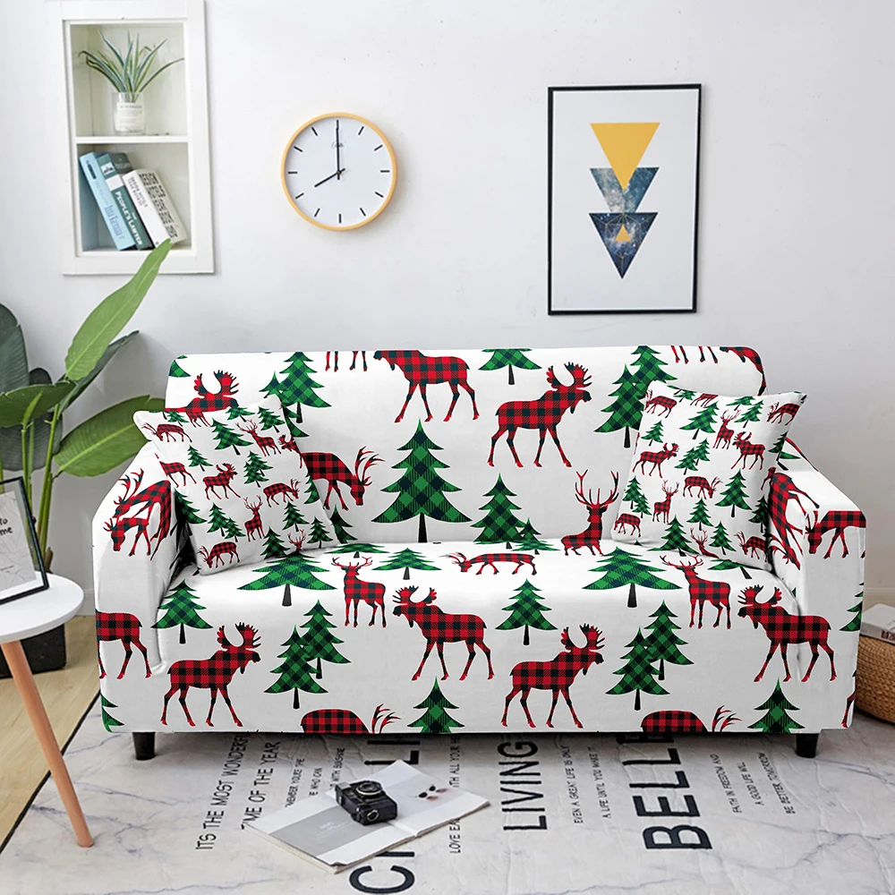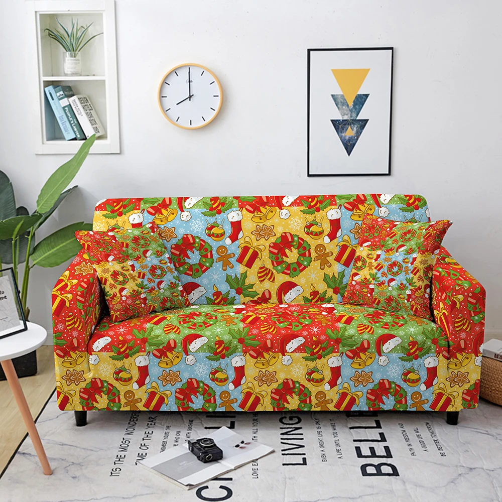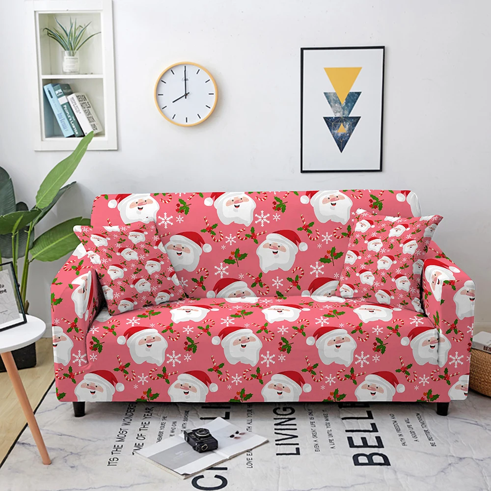 Эластичный чехол на диван для гостиной, Рождественский чехол на диван, чехол на диван с Санта-Клаусом, чехол на диван, рождественские украшения для дома