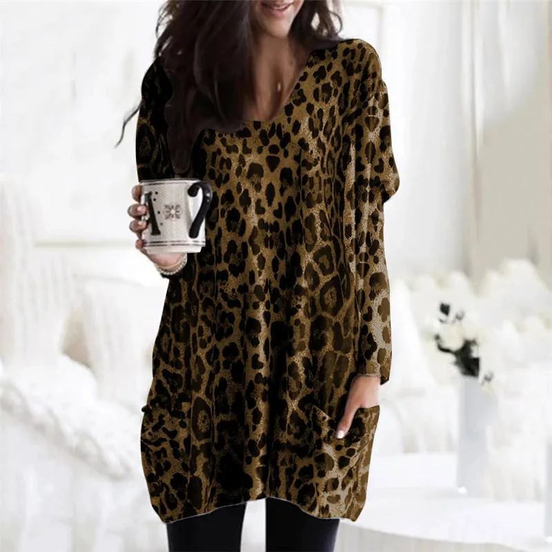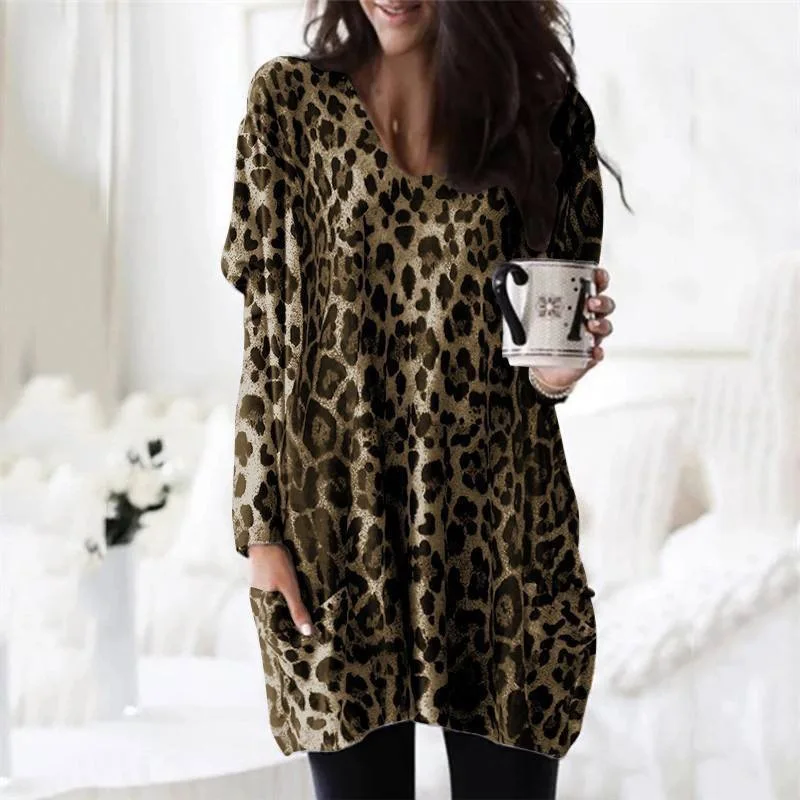 Свитшот женский с леопардовым принтом, Свободный пуловер с длинным ...