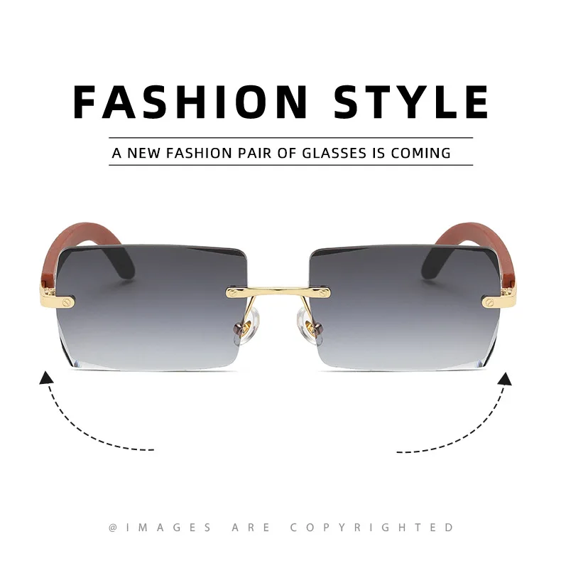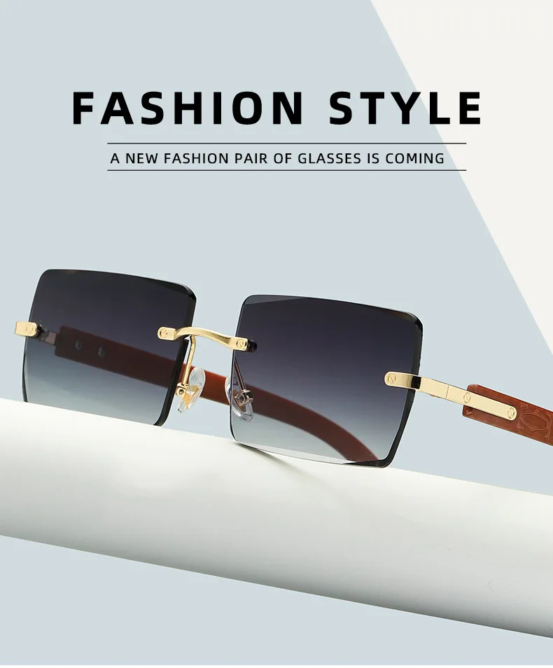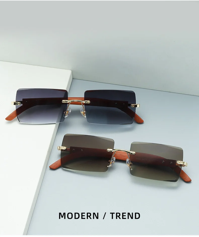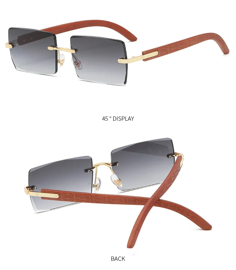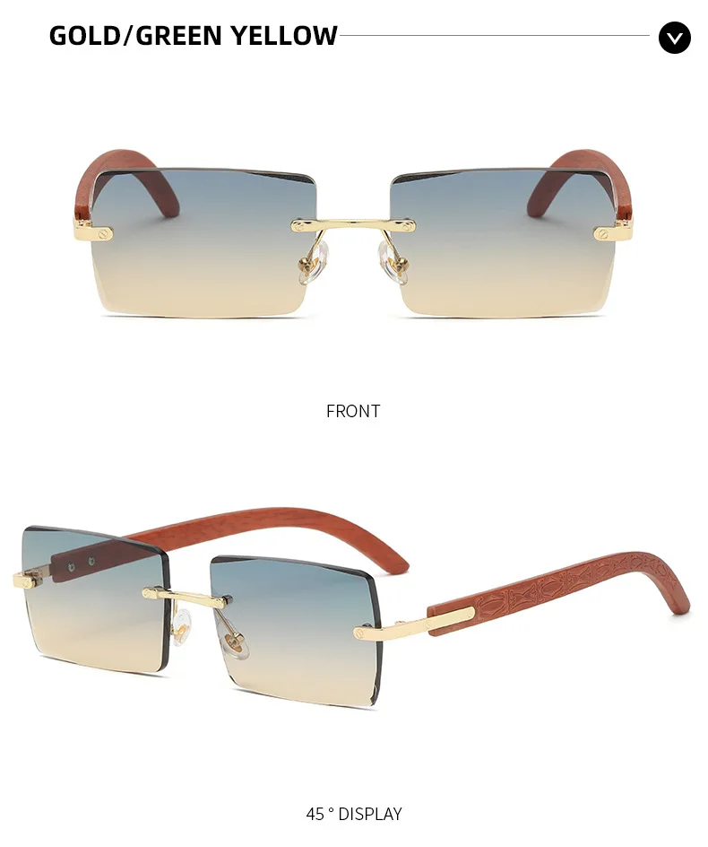 2021 Мужские Модные прямоугольные деревянные солнцезащитные очки, Классические солнцезащитные очки без оправы в стиле ретро, брендовые роскошные дизайнерские солнцезащитные очки с защитой UV400