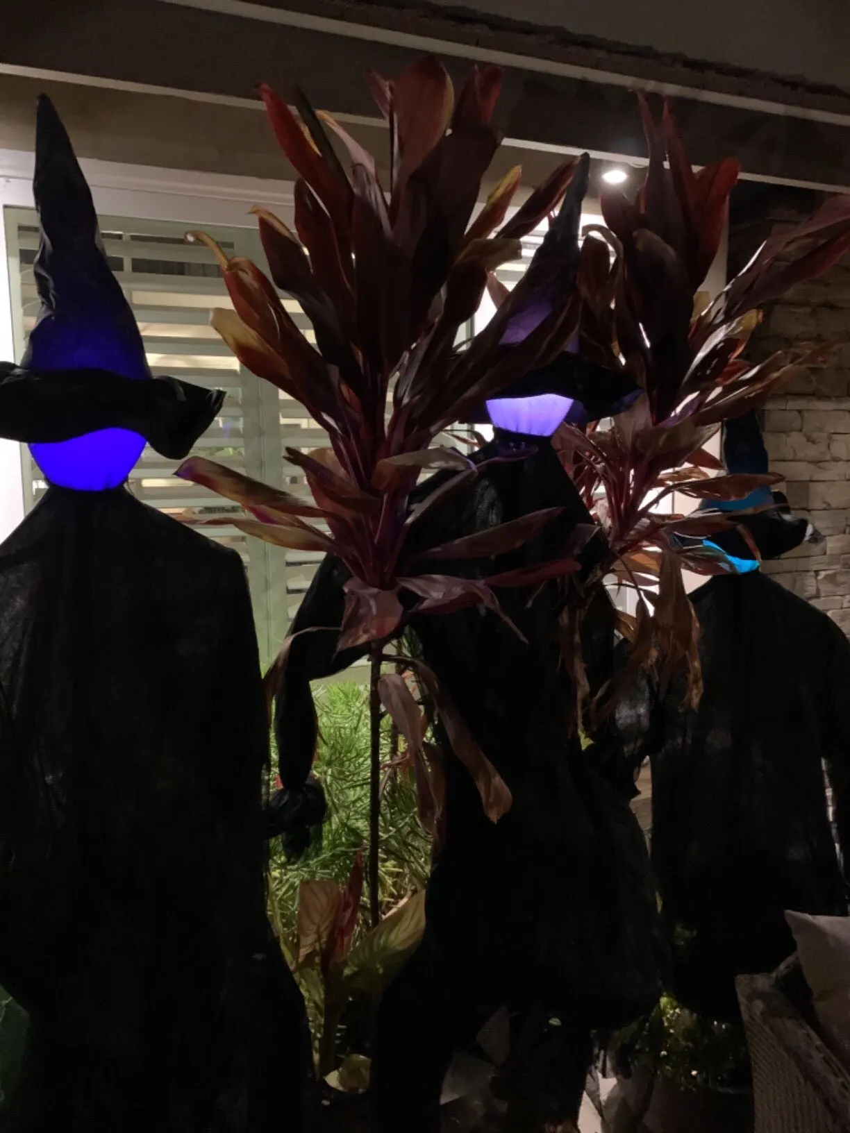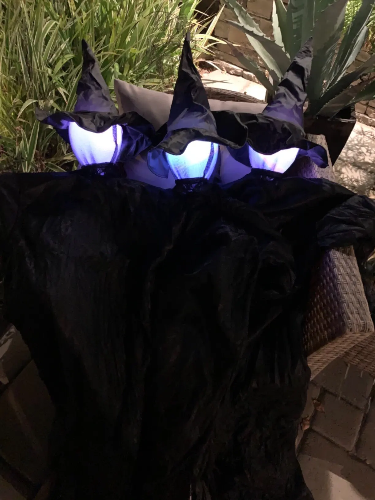 Моя семья любит украшать на праздники, особенно на Хэллоуин. В этом году мои сыновья хотят создать колдуньи пивоварни с дымом и пузырьками, и эти три ведьмы идеально стоят вокруг него! Все они держат руки и имеют провода, натянутые на каждый, так что головки загораются. Центральная ведьма имеет коробку boice и выключатель. Я рад, что они решили включить карман для батареи, который velcros закрывает, чтобы держать подальше от таких элементов, как дождь. Я был так расстроен в течение многих лет, когда возлюбленные механические вещи ломаются, когда идет дождь. Это сделало меня очень счастливым. Они также кажутся очень маленькими и легко хранить, потому что после того, как вы удалите полюсы, это в основном головка, которая занимает пространство. Есть поролоновые провода, чтобы согнуть руки, а затем материал платья падает над полюсами, чтобы создать тело. Эти звуковые звуки пугающие колдуньи и музыка. Мой 6 лет говорит, что «очень тусклый»