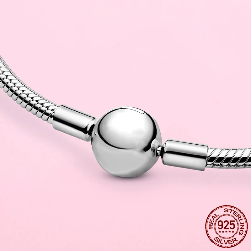 Женский браслет из серебра 925 пробы, с круглым застежкой и змеиным...