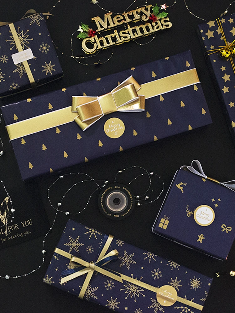 Бумага для упаковки подарков на Рождество, с блестками, звездой и Луной