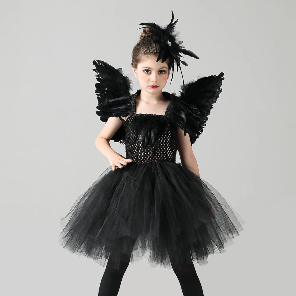 Детский костюм черного лебедя на Хэллоуин, Детский костюм с перьями...