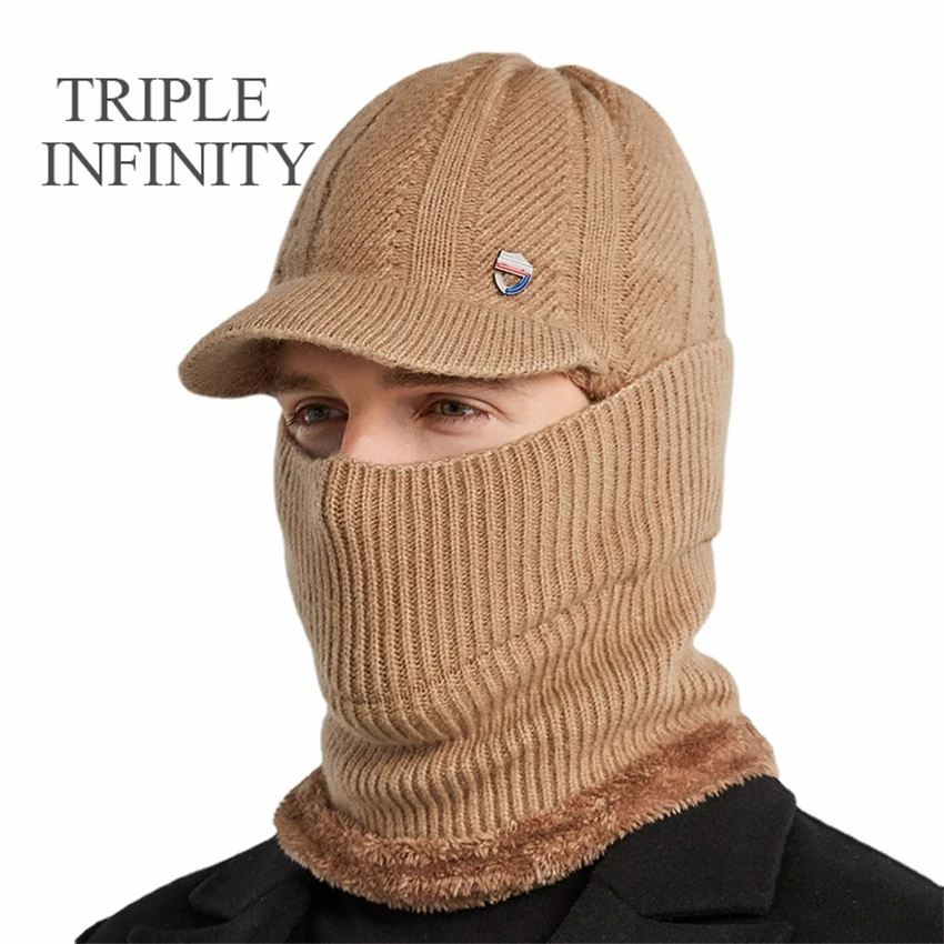 Трикотажная шапка TRIPLE INFINITY для мужчин, плотная ветрозащитная Пыленепроницаемая шапка с солнцезащитным козырьком, теплая уличная шапка для велоспорта, бейсболка