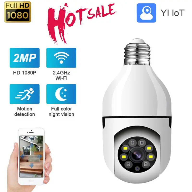 Камера видеонаблюдения с лампочками E27, Wi-Fi, PTZ, HD, 1080P