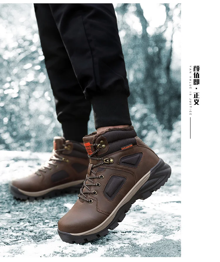 Зимняя обувь с мехом внутри, теплые уличные мужские треккинговые бо...