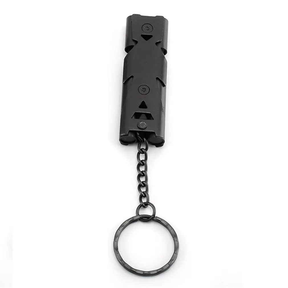 2. Премиум-Материал: металлический свисток изготовлен из алюминиевого сплава, что делает двойные трубки безопасными свистками долговечными и постоянными с комфортным прикосновением.