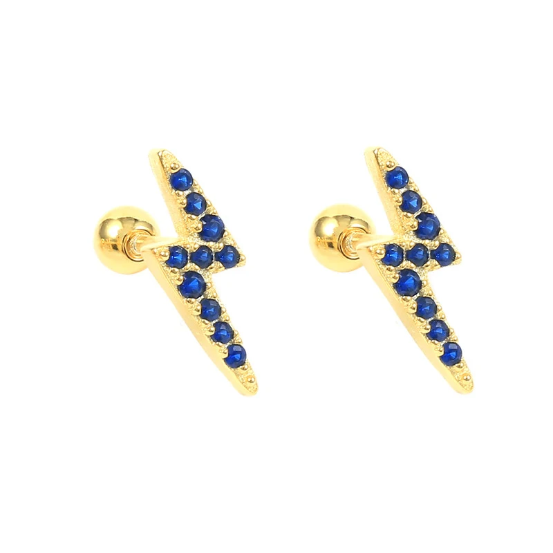 925 пробы серебряные серьги-гвоздики с синим цирконием, крошечные серьги-гвоздики с синим кристаллом стрекозой, птицей, динозавром, болтами-молниями