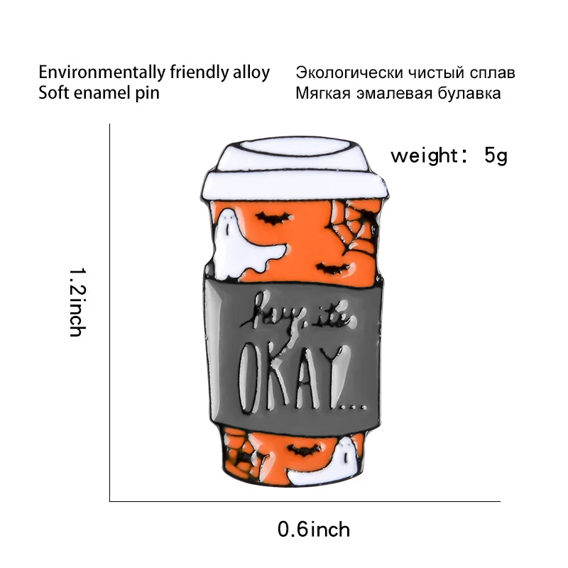 Эмалированная булавка в виде кофейной чашки, значок на лацкан в виде тыквы на Хэллоуин, рюкзак, одежду, подарок для детей, друзей