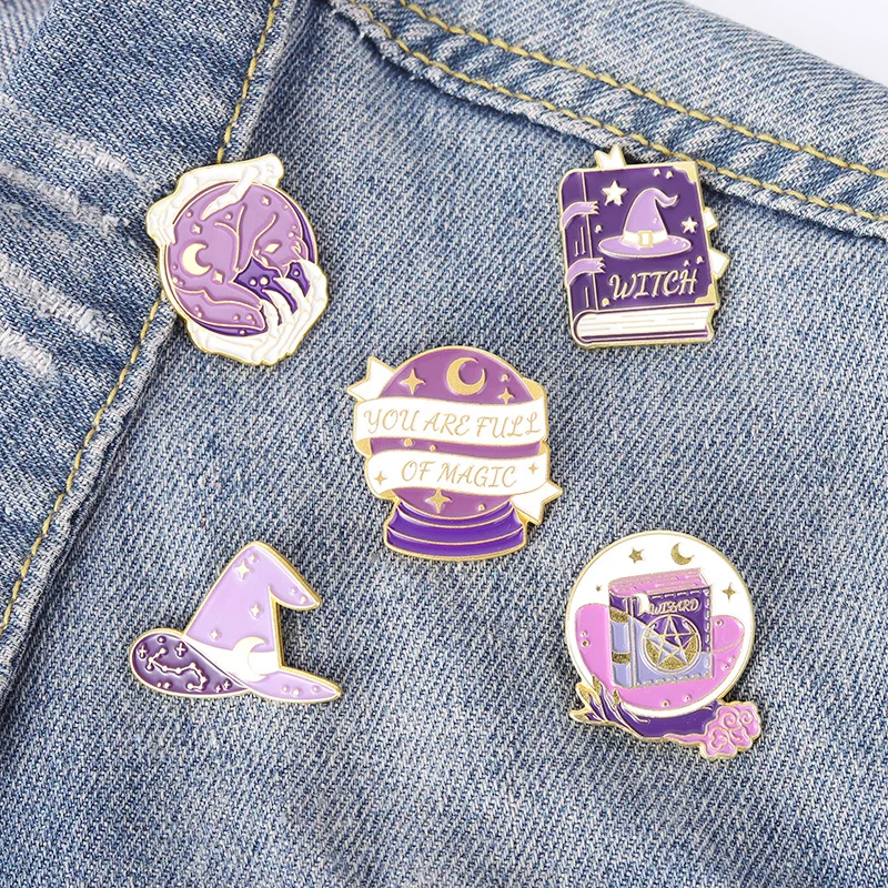 Фиолетовые эмалированные булавки в виде ведьмастера, брошь-книжка в виде колпака, кота, брошь на лацкан, значок в сумке, готическое ювелирное изделие, подарок для друзей