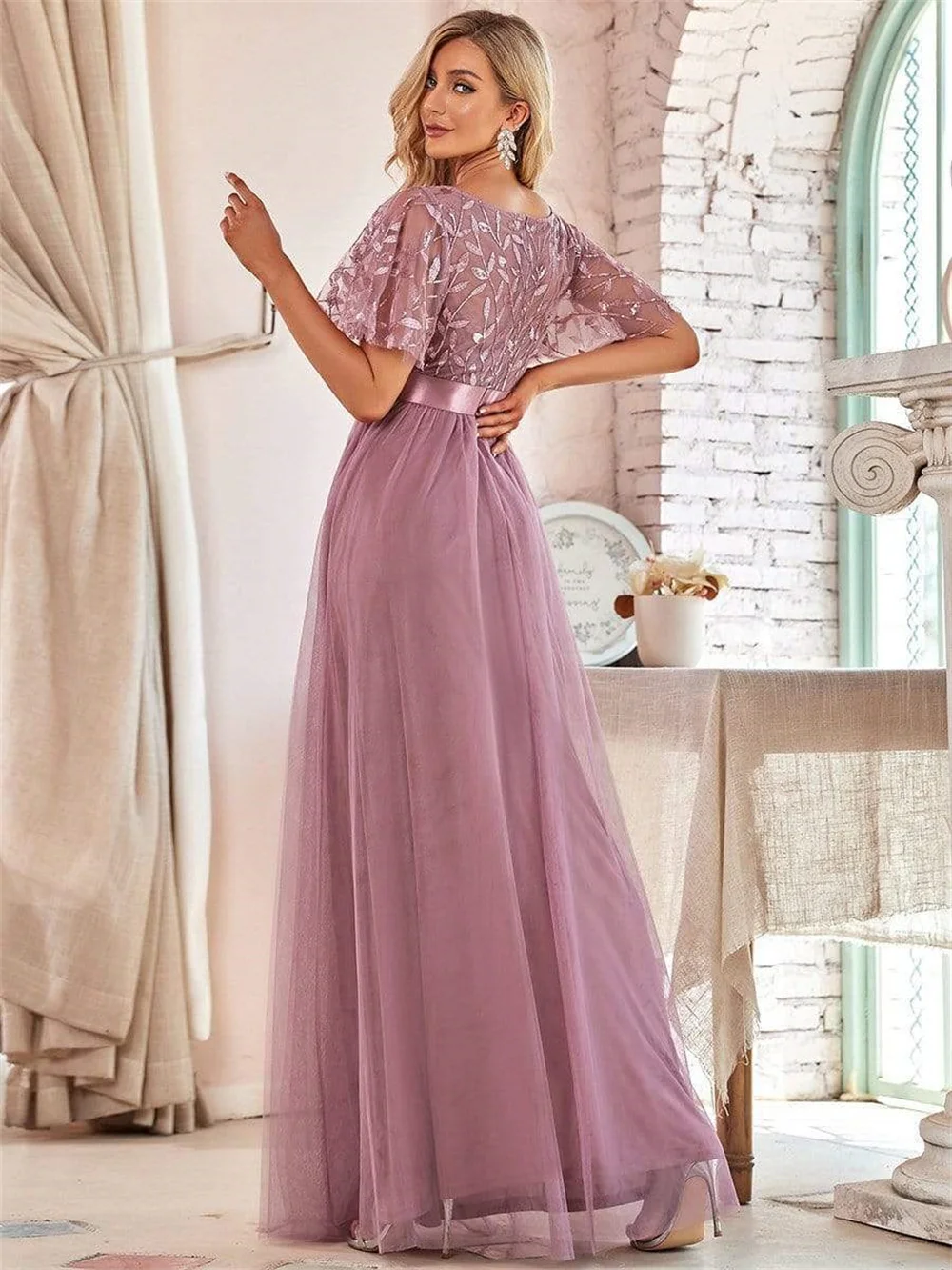 Тюлевое кружевное длинное вечернее платье, ТРАПЕЦИЕВИДНОЕ платье для выпускного, пыльно-розовое темно-синее, размера плюс