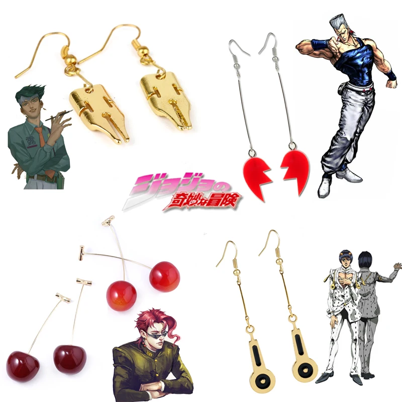 Серьги-клипсы с аниме Невероятные приключения Джоджо, вишневые серьги-капельки Kakyoin Noriaki Rohan Kishibe для женщин и мужчин, ювелирные изделия для косплея