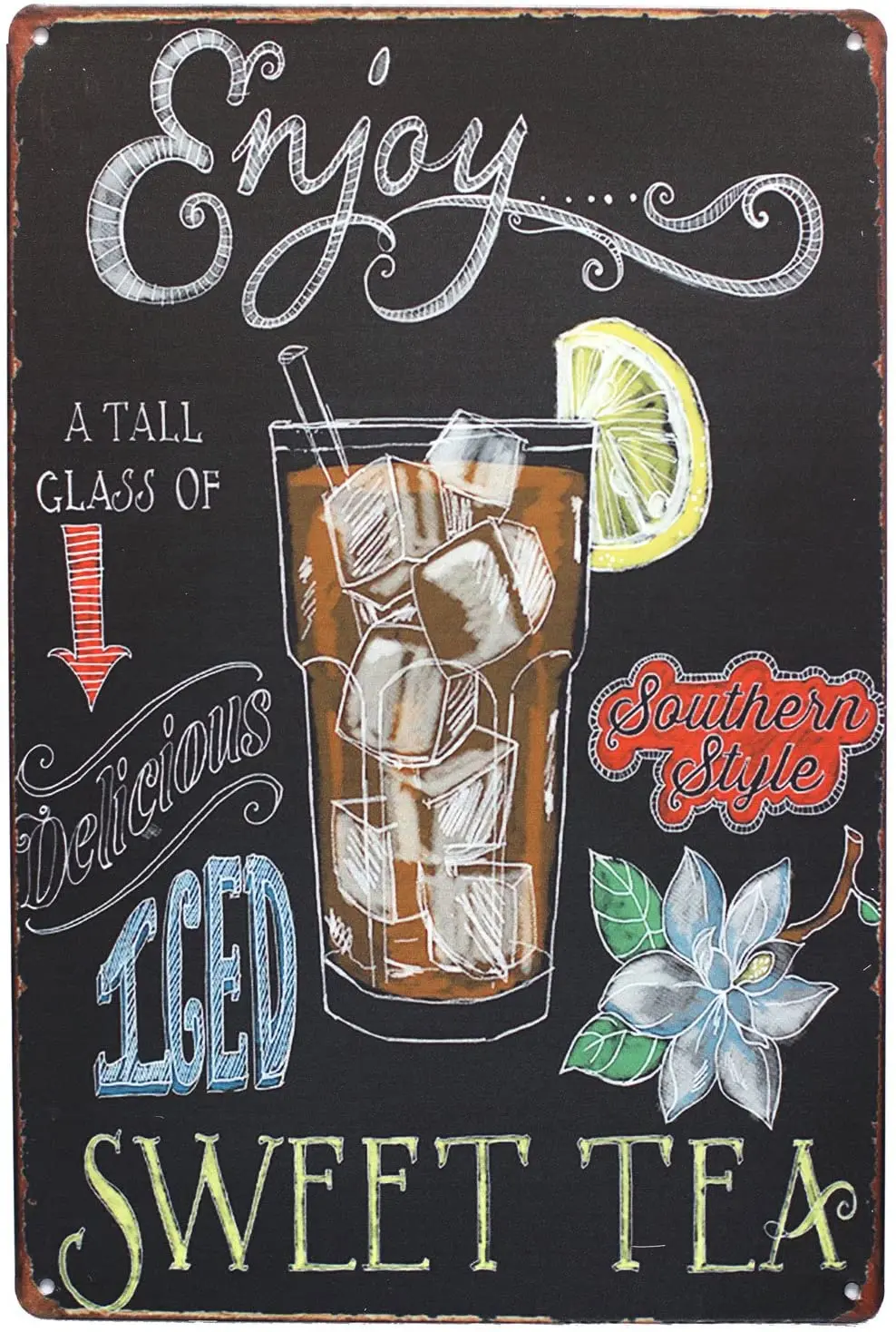 UOOPAI Наслаждайтесь холодным сладким чайным старинным металлическим знаком