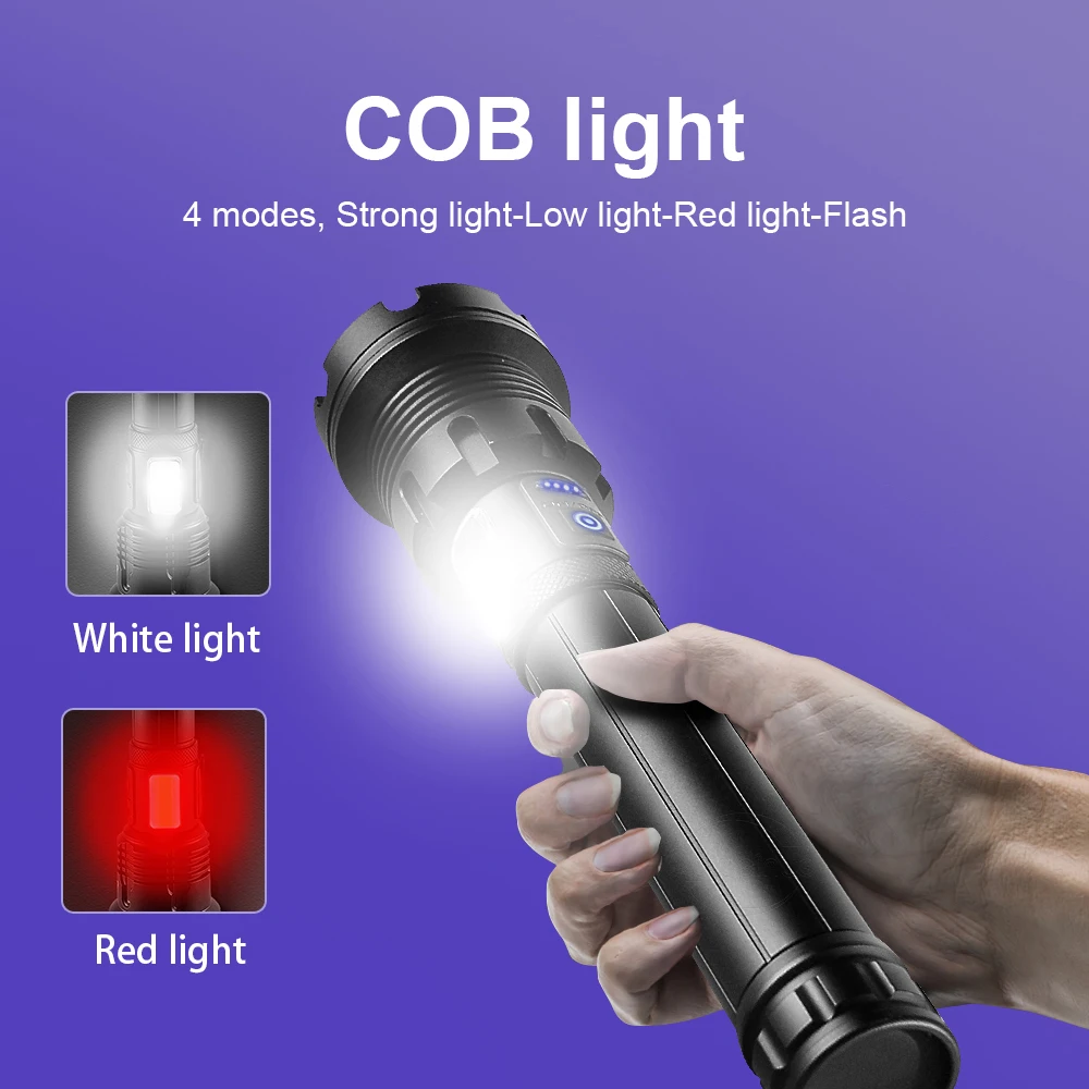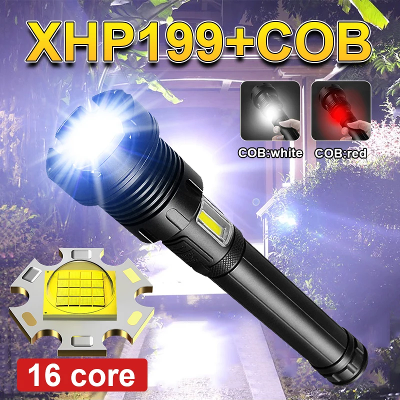 Супер мощный яркий светодиодный фонарик XHP199 26650, перезаряжаемый тактический фонарь с USB, охотничий фонарь XHP90 светодиодный фонарики высокой мощности