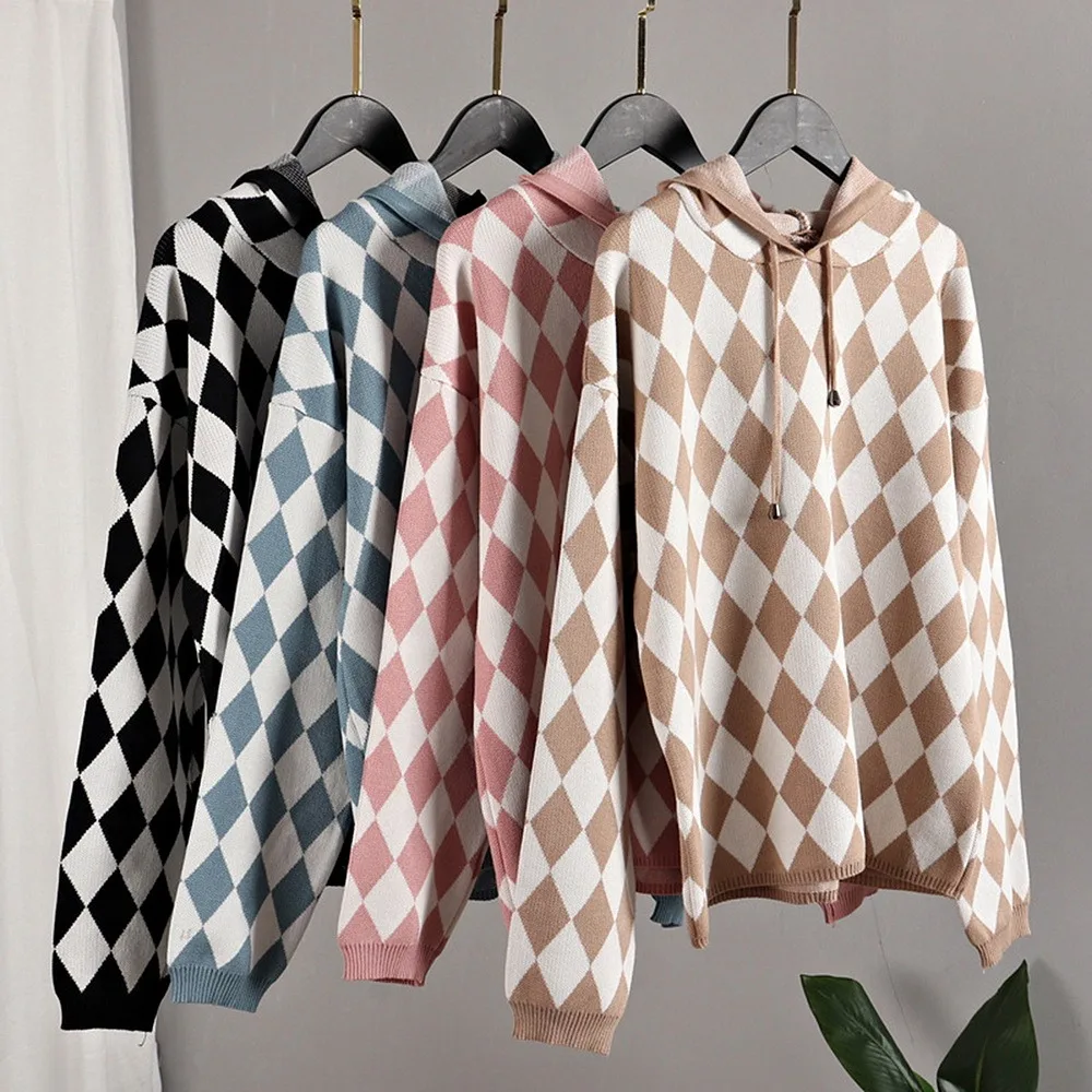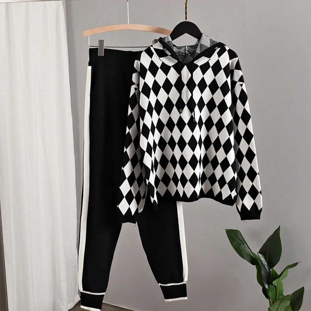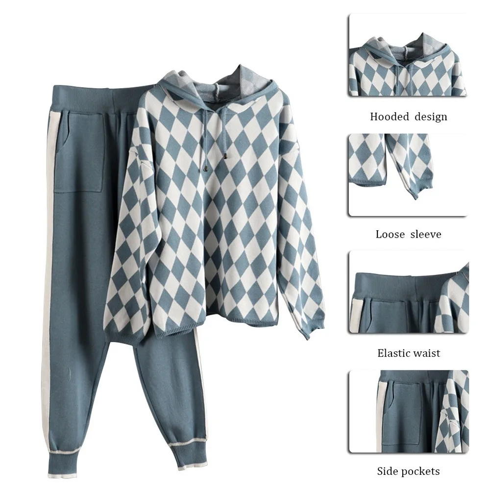 Спортивный комплект для женщин, вязаный спортивный костюм, свободный Свитер оверсайз, укороченные пуловеры с капюшоном, джемпер и штаны для бега с карманами, наряды