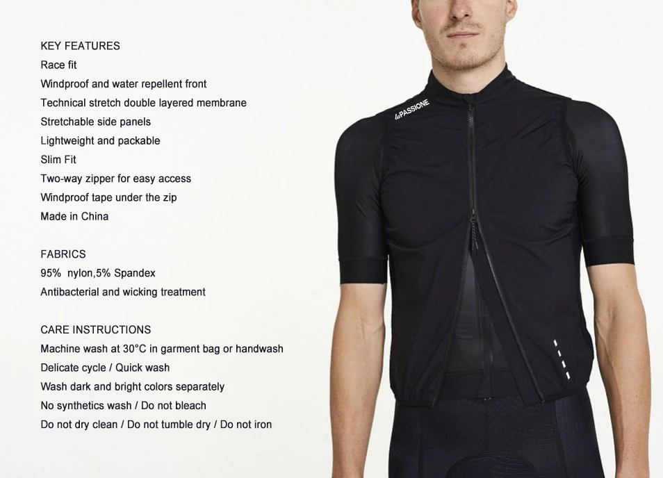 Ветрозащитный велосипедный жилет LA пассион, новинка 2021, профессиональная команда, легкий велосипедный жилет с двухсторонней молнией, черный