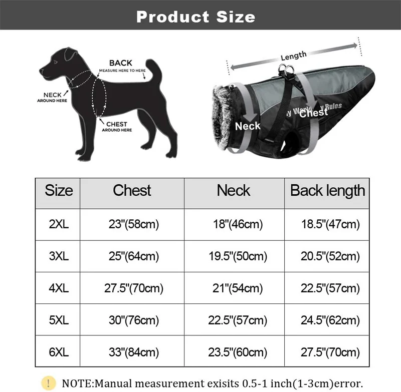 Об этом товареСъемный дизайн жгута-легкая ходьба! --- Водонепроницаемая зимняя куртка для собак со съемными ремнями, двойным кольцом D и прочная застежка на спине, она может снова отрегулировать размер груди и сделать ходячих собак очень легкими. Действительно инновационный дизайн для удобства домашних животных!Водолазка на подкладке из искусственного меха-современный и теплый! --- Толстый и мягкий пушистый воротник, шелковистый гладкий и мягкий на ощупь, пушистый и теплый на ощупь, гуманная водолазка может защитить уши и голову собаки в холодную погоду. Есть два регулируемых эластичных ремня на двойных сторонах воротника, регулируйте его длину и гораздо более эффективно предотвращайте ветер и снег.Водонепроницаемость и Светоотражающая-водонепроницаемая поверхность с теплой и толстой хлопковой внутренней поверхностью, сохраняет ваших питомцев в тепле зимой, зимой или под дождем. Светоотражающие элементы будут очень заметны в темноте, сохранят вашу собаку в безопасности ночью.Молния на спине-легко надевать! --- Защитный кожух на собачьей куртке предотвращает появление случайной молнии на меху и коже собаки. Регулируемые эластичные ремни на животе делают эту куртку подходящей для ваших собак.Измерьте и купите правильный размер: Шея: Измерьте шею вашей собаки, оставив место для двух пальцев. Грудь: наиболее важные измерения; Измерьте грудь вашей собаки вокруг самой широкой части. Длина спины: от шеи собаки до хвоста. Добавьте 2 дюйма для комфорта. Если ваш питомец падает где-то между двумя размерами, мы советуем заказывать больший из двух.