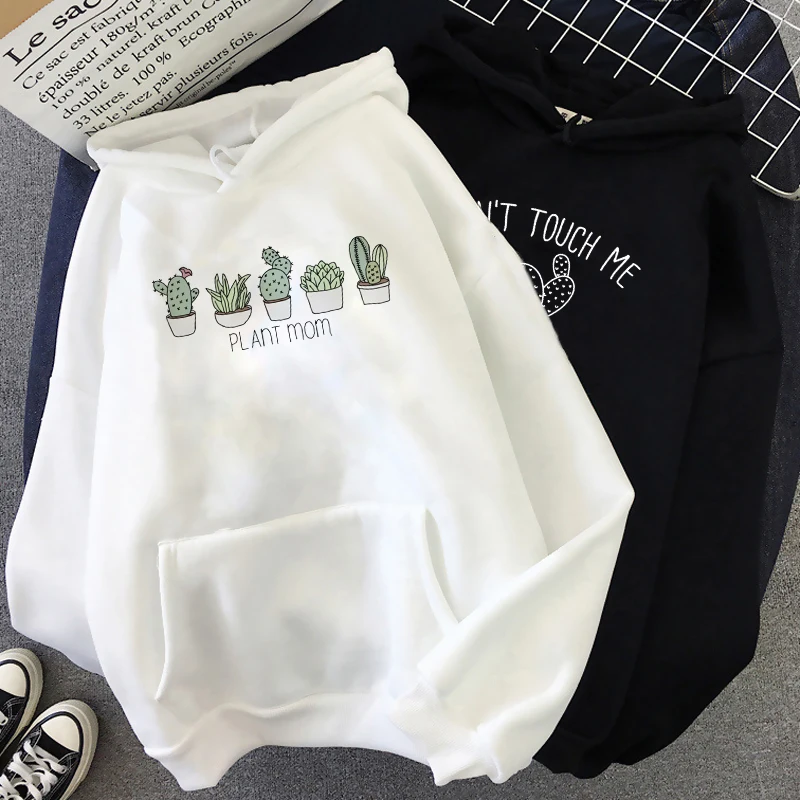 Женская толстовка с капюшоном Y2K, зимняя Толстовка в стиле Харадзюку, с изображением кактуса, милый худи в стиле аниме