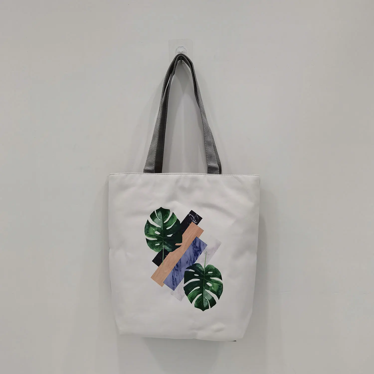 Женская сумка с принтом растений, простая сумка через плечо с листьями, многофункциональная сумка-тоут, повседневная сумка для покупок, сумка для хранения на открытом воздухе