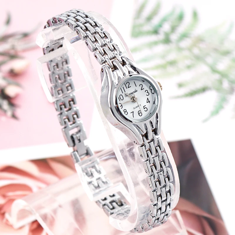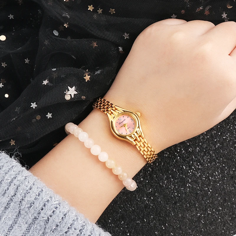 Часы наручные женские с маленьким циферблатом, Кварцевые Популярные, с золотистым браслетом, элегантные для отдыха