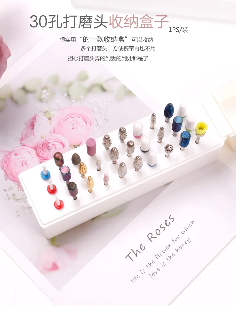 30 слотов Белый/Розовый ногтей сверло пластиковый ящик для хранения | Контейнер держатель | Маникюрные фрезы дисплей | Аксессуары для ногтей инструмент для дизайна ногтей