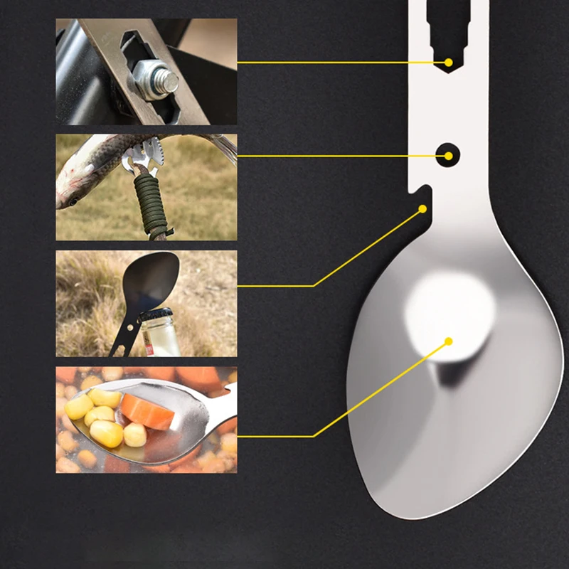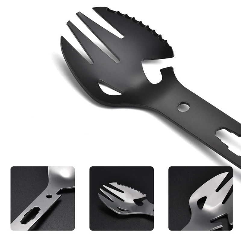 EDC Открытый Мини Портативный Ложка Вилка легкий полезный титана Кемпинг альпинизма столовые приборы Спортивная вилка ложкаМногофункциональная нержавеющая сталь EDC Spork вилка ложка открывалка для бутылок лезвие гаечный ключ для пикника на открытом воздухе выживания кемпингаХарактеристики:Модель: C1Материал: нержавеющая стальЦвет: серебристый, черныйРазмер: 180 мм * 40 мм * 1,5 мм/7,09*1,57*0,06"Вес: 44 гФункция: ложка, вилка, лезвие в форме зуба, открывалка для бутылок, отверстие для веревки harpoon, консервный нож, гаечные ключи (M2.5 / M3 / M3.5 / M4 / M5), подвесное отверстиеПодходит для сцен: пикники на открытом воздухе, кемпинг на открытом воздухе, задача выживания