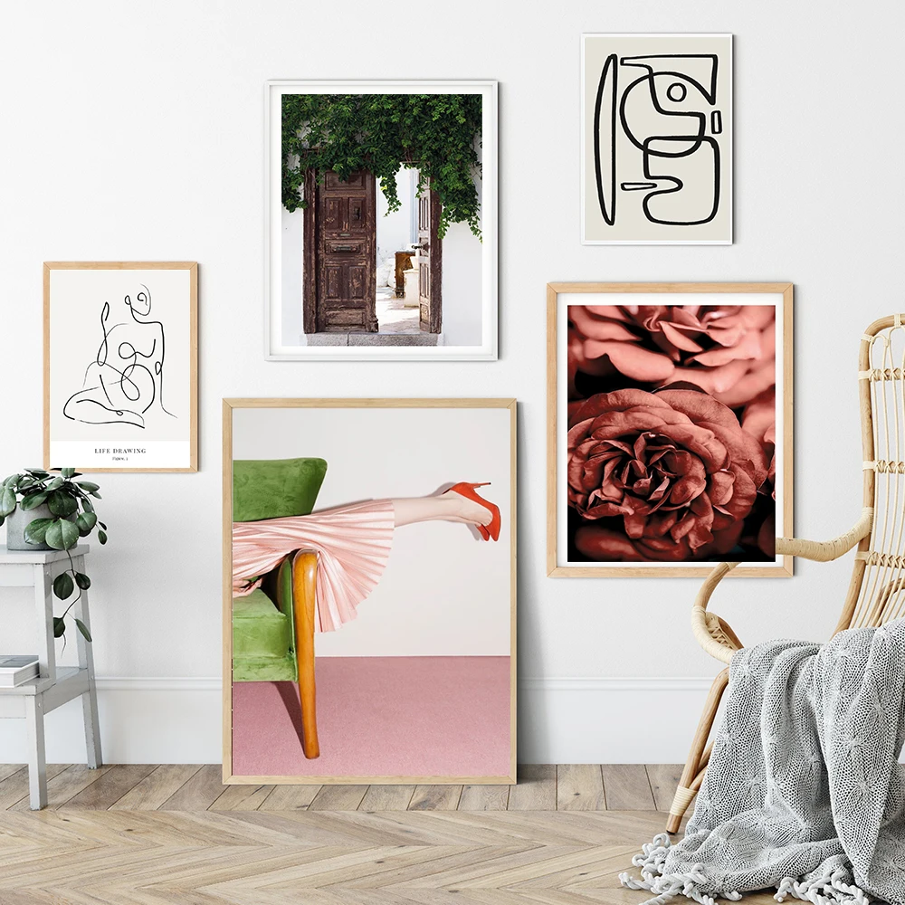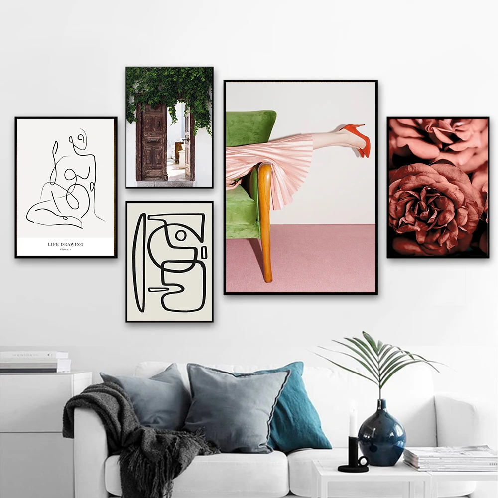 Домашний холст абстрактный рисунок фигура Лежащая женщина плакат кушсерфинг настенная Роза художественное украшение старая дверь Холст Картина Печать