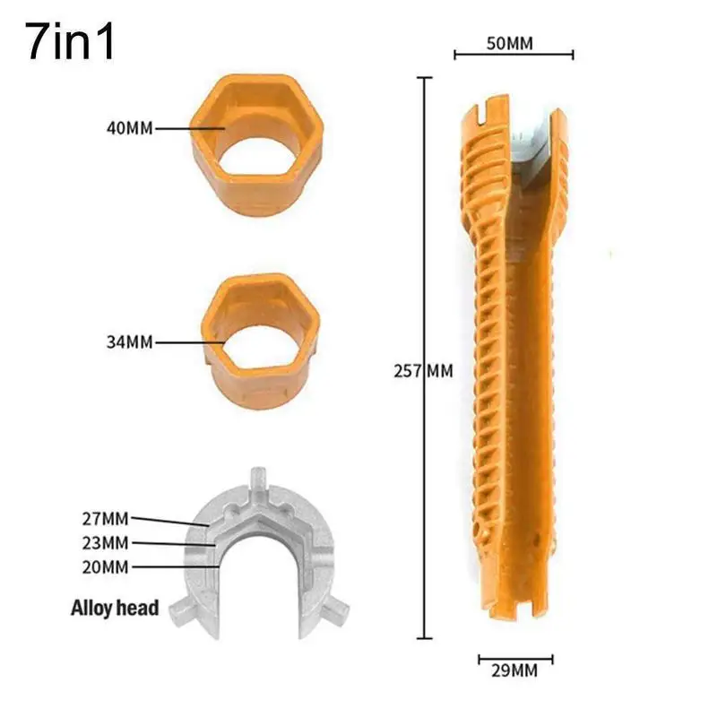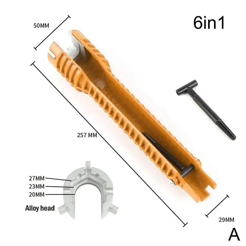Характеристики:Наименование: Ремонтный ключ для раковиныМатериал: АБС, углеродистая сталь, сплавЦвет: оранжевыйРазмер: как показано на картинкеОсобенности:1. Противоскользящий ключ, удобный и безопасный для ваших рук.2. Универсальный Сантехнический инструмент, подходит для 99% гаек смесителя.3. С широким спектром применения, идеально подходит для ремонта и сборки раковины, смесителя и водонагревателя. Посылка включает в себя:1 Набор ремонтных гаечных ключей для раковины