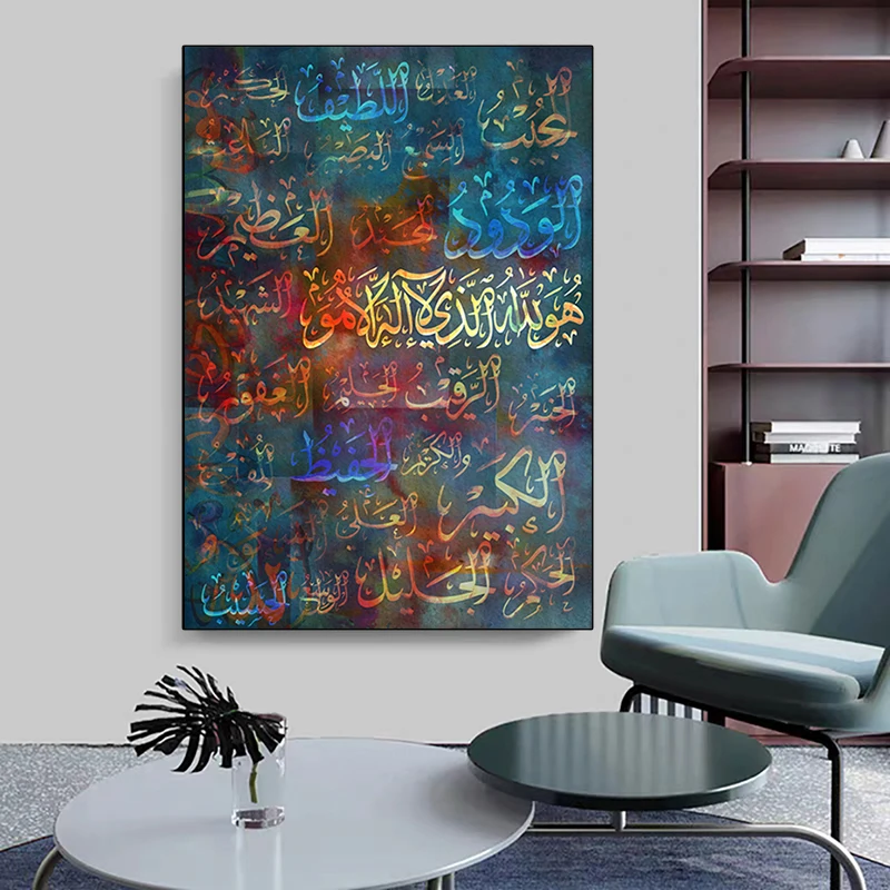 Мусульманская каллиграфия, настенная Картина на холсте, мусульманские плакаты и принты для Рамадана, мечети, комнаты, Декор для дома