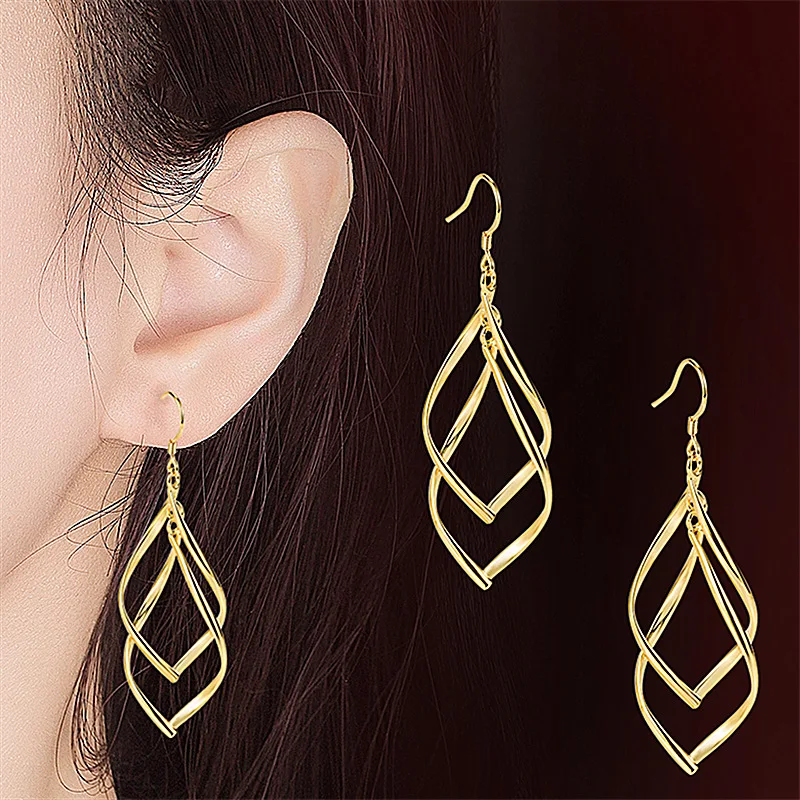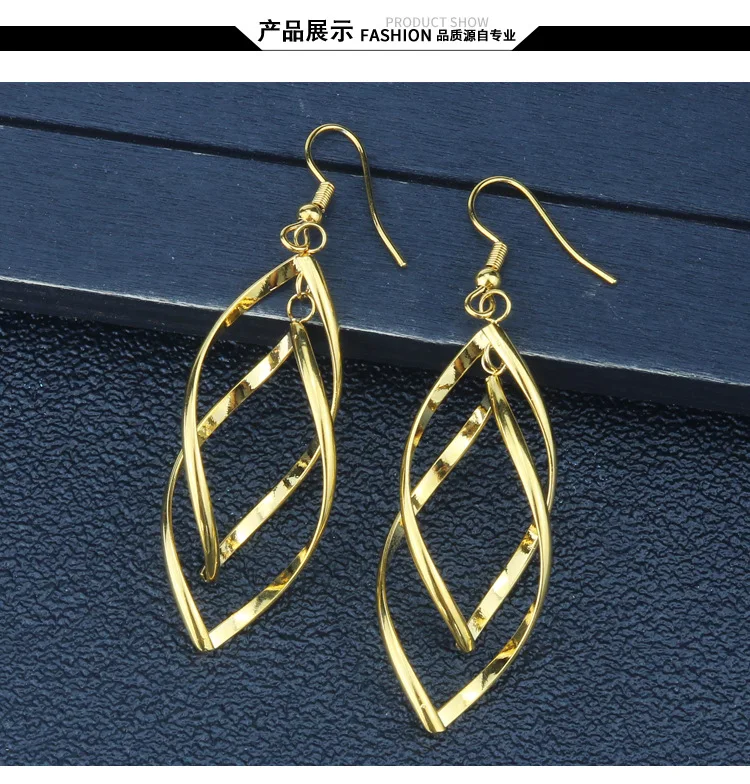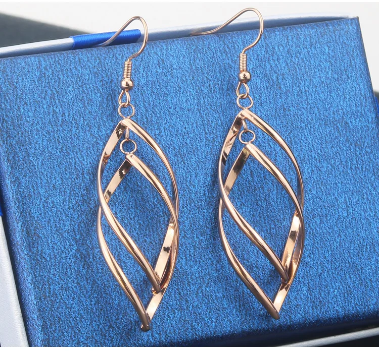 Висячие серьги цвета розового золота для женщин, свадебная бижутерия, длинные серьги, Спиральные серьги в форме банановых листьев, серебряные серьги