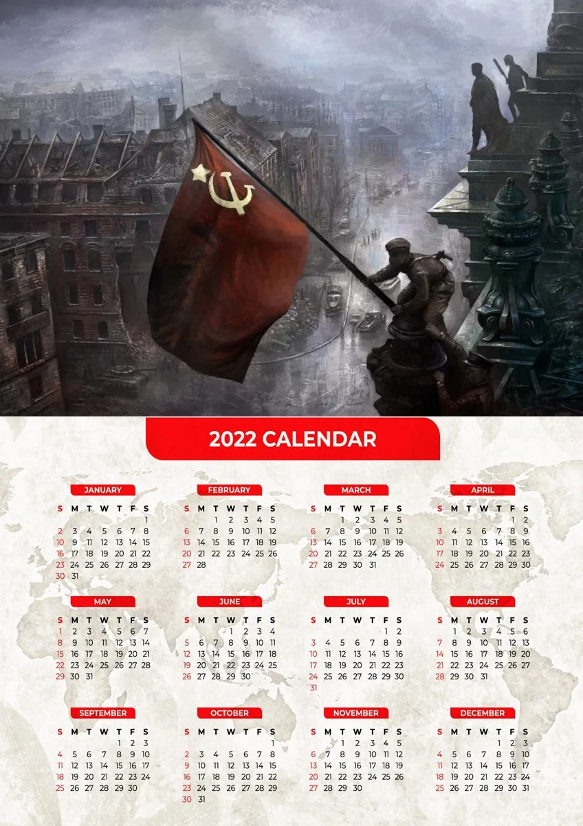 Календарь 2022, постеры из крафт-бумаги Второй мировой войны, комму...