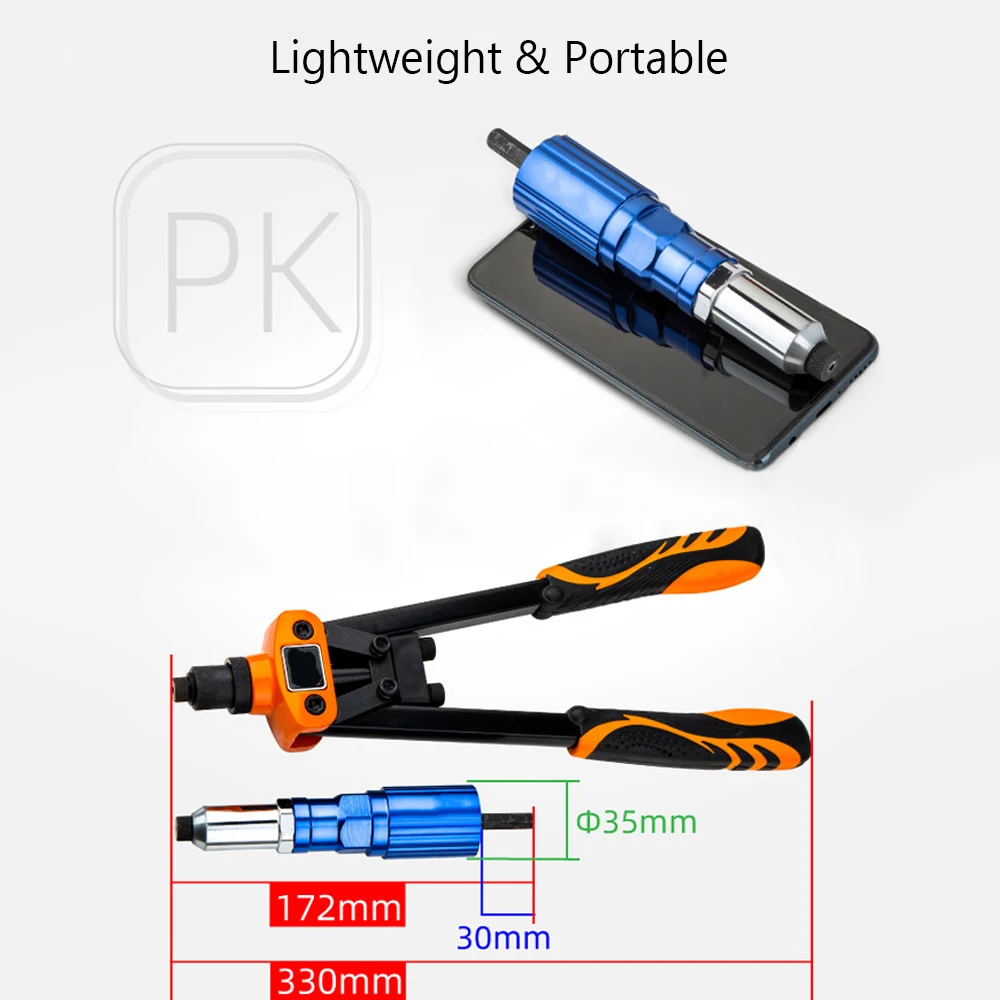 KKMOON Электрический заклепочный пистолет, адаптер, электрическая дрель, беспроводной Клепальный Инструмент с гаечным ключом, съемная ручка, заклепочные гайки, запасная лапа