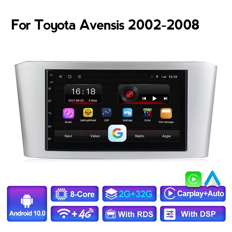 Восьмиядерный Android 11 Авторадио для Toyota Avensis 2002 - 2008 а...