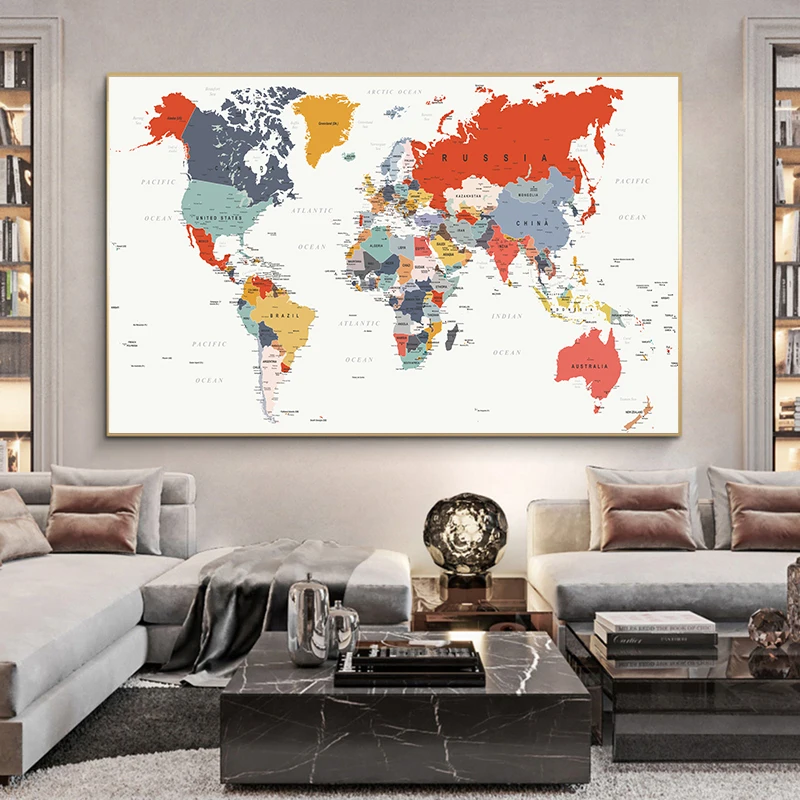Настенная картина Карта мира, настенные постеры и принты розового цвета, картина большого размера для гостиной, домашний декор