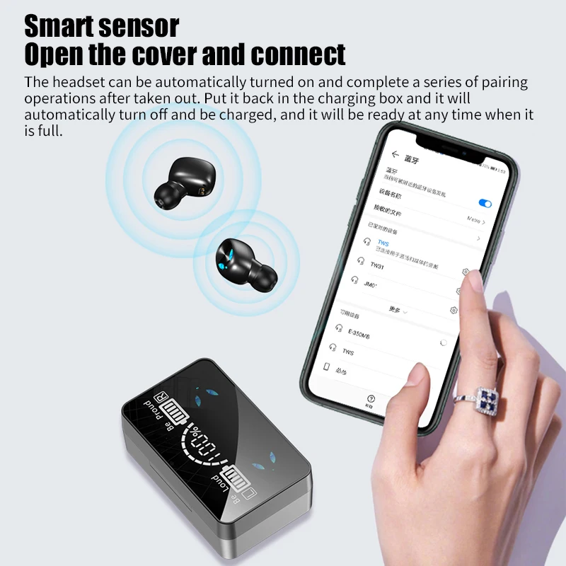 TWS-стереонаушники с зарядным футляром, 5,1 мАч, с поддержкой Bluet...