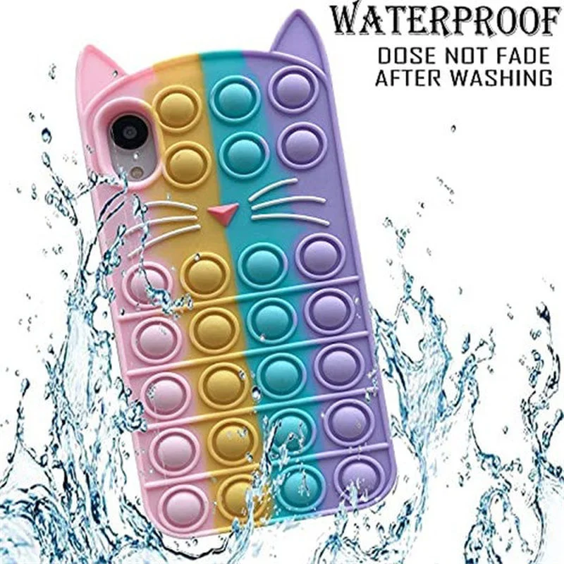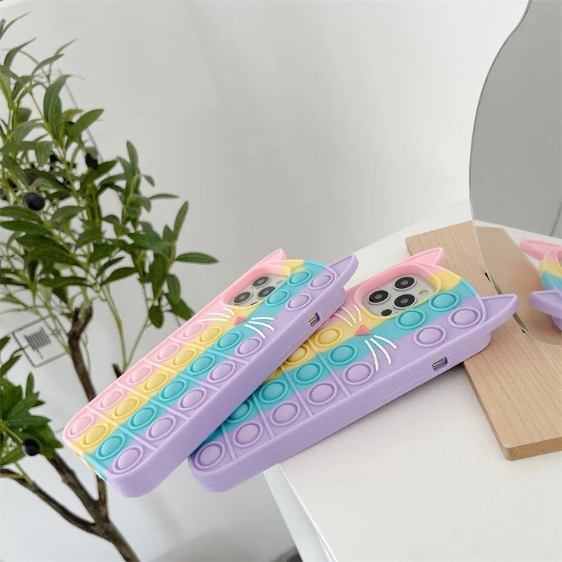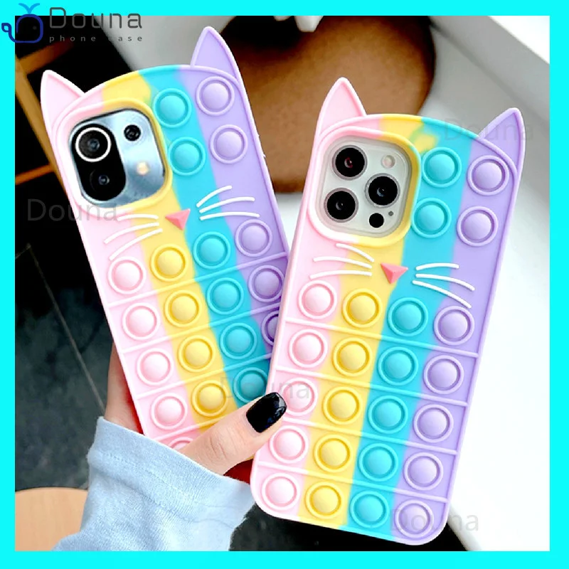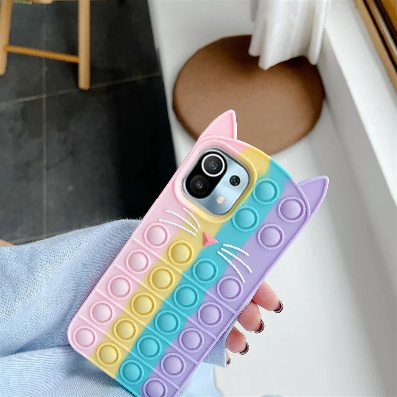 Чехол для Xiaomi Redmi 9A, 9AT, 9i, Note 10, 9S, 9, 7 Pro, Mi 11i, 11X, POCO F3, снимает стресс, милый 3D Радужный кот, пузырьковый чехол для телефона
