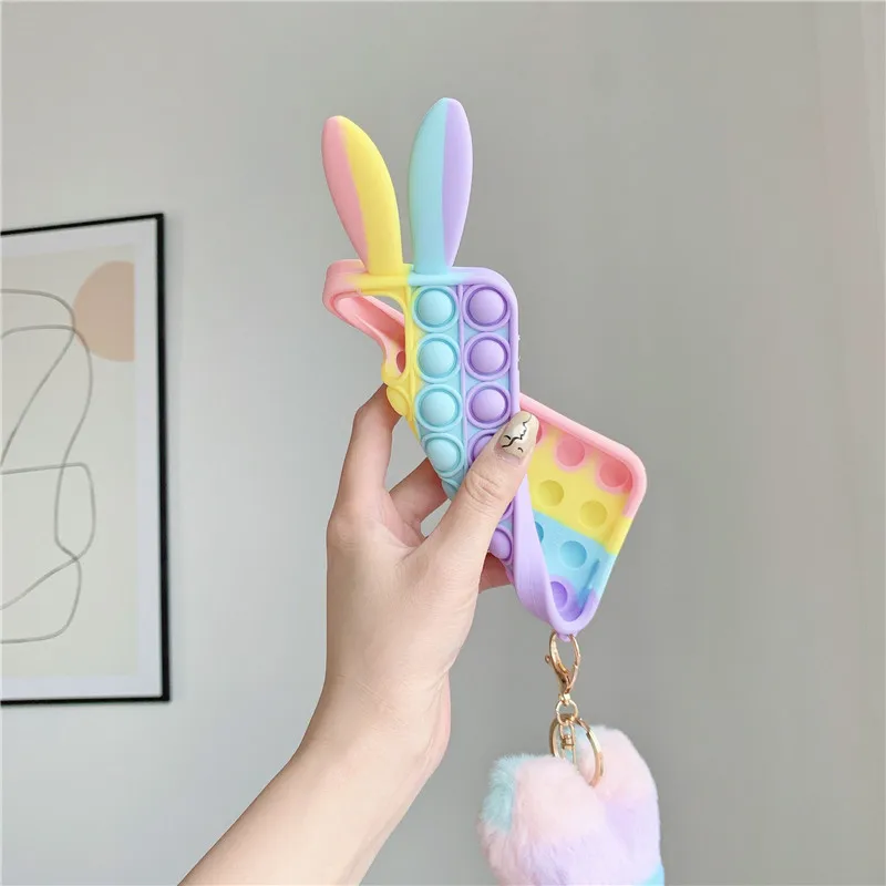 Чехол Poco X3 Pro NFC для Xiaomi Redmi Note 8, 9S, 9 Pro Max, снятие стресса, поп фиджет-игрушки, милый чехол с пузырьками и кроличьими ушками