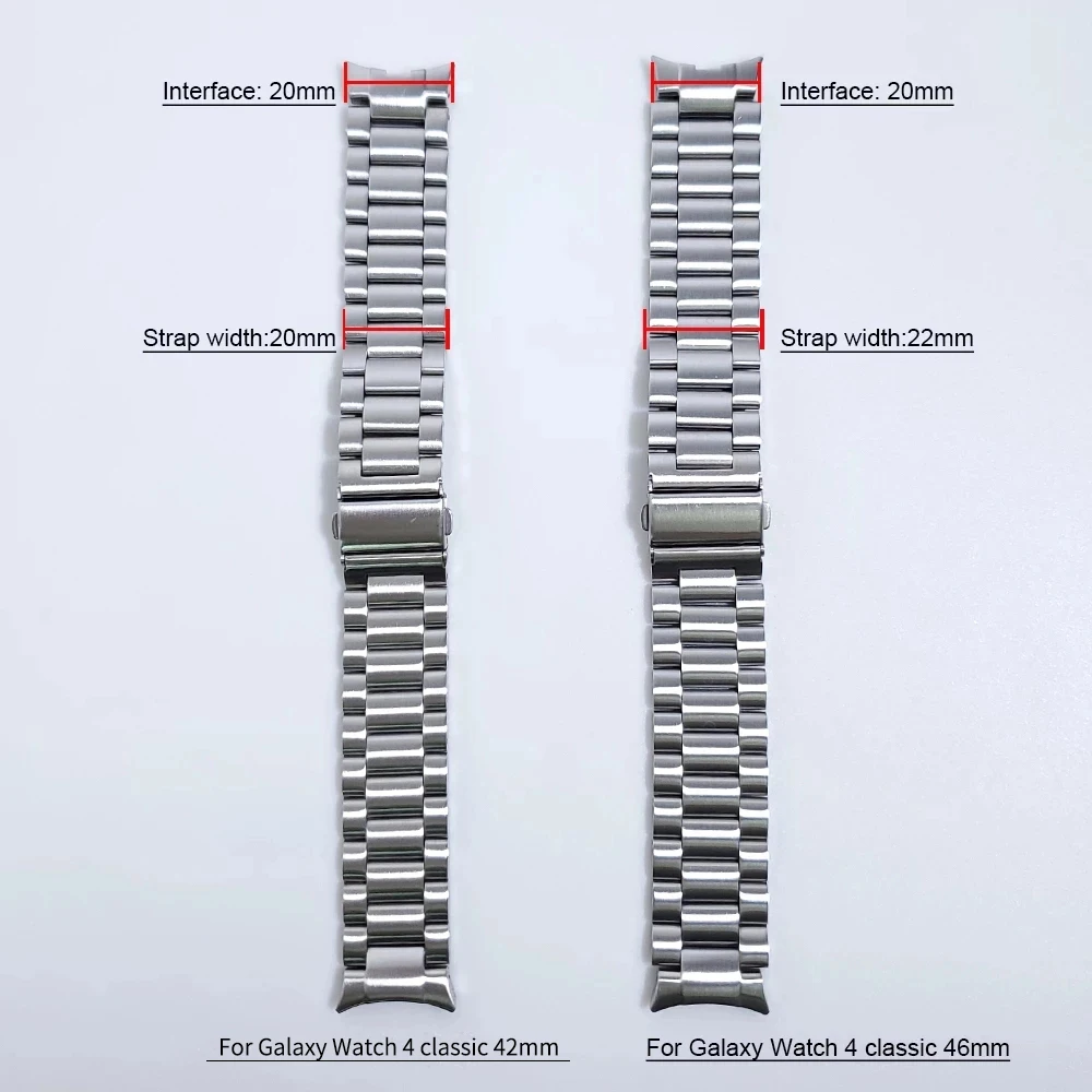 Без зазора изогнутый конец из нержавеющей стали металлический ремешок для Samsung Galaxy Watch 4 Классический 46 мм 42 мм/44 мм 40 мм сменный БраслетПосылка:1 * ремешок (в комплект не входят часы)1 * Инструмент регулировки длины ремешка (бесплатный подарок не поддерживает послепродажное обслуживание)