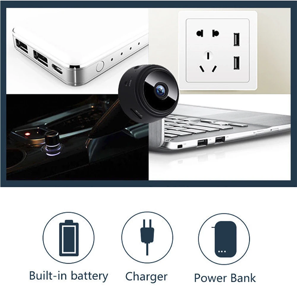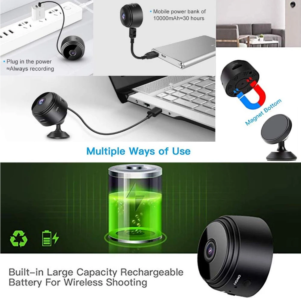 Эта маленькая камера с жестким зарядным кабелем и волшебным основанием, при зарядке во время записи, вы можете вручную повернуть угол записи на 360 градусов.