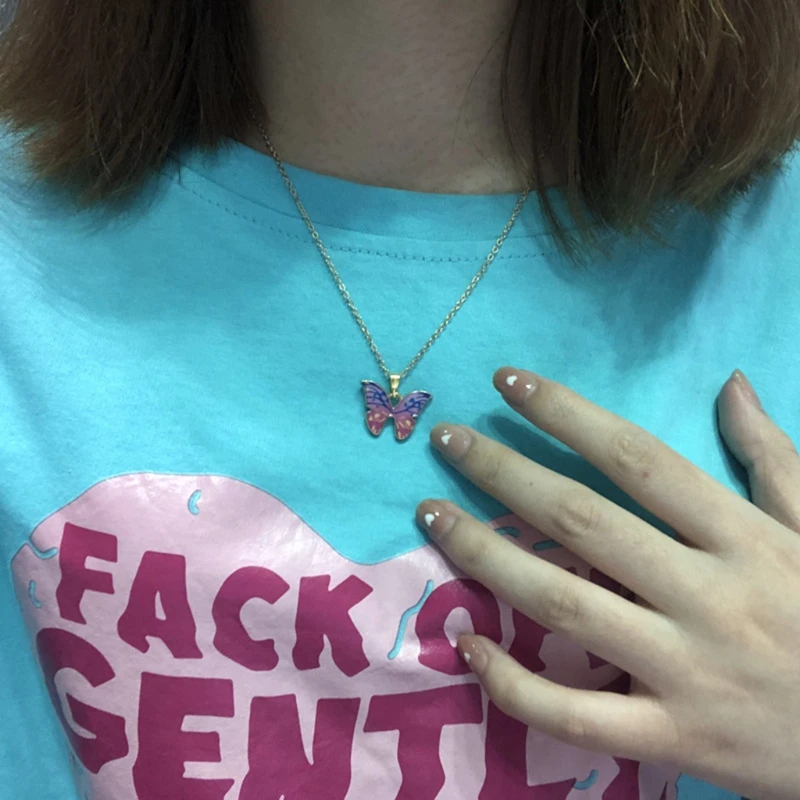 Женское ожерелье с подвеской-бабочкой, золотистое цветное ожерелье ...