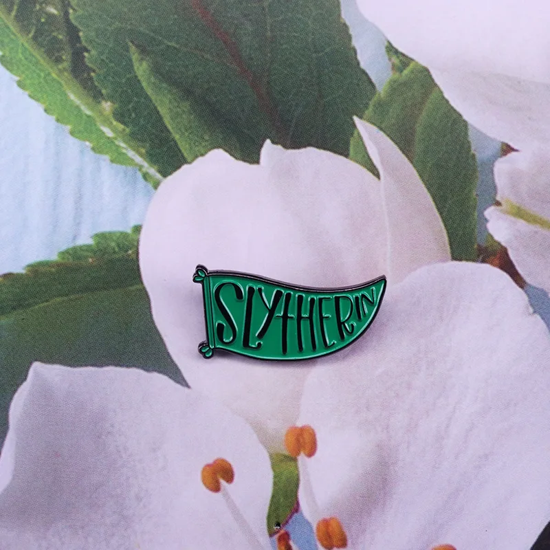Распродажа! Эмалированная булавка Слизерин, Волшебная академическая эмблема, броши, зеленый флаг с надписью, значок, отворот, булавка, рюкзак, аксессуары, ювелирные изделия, подарки 2021