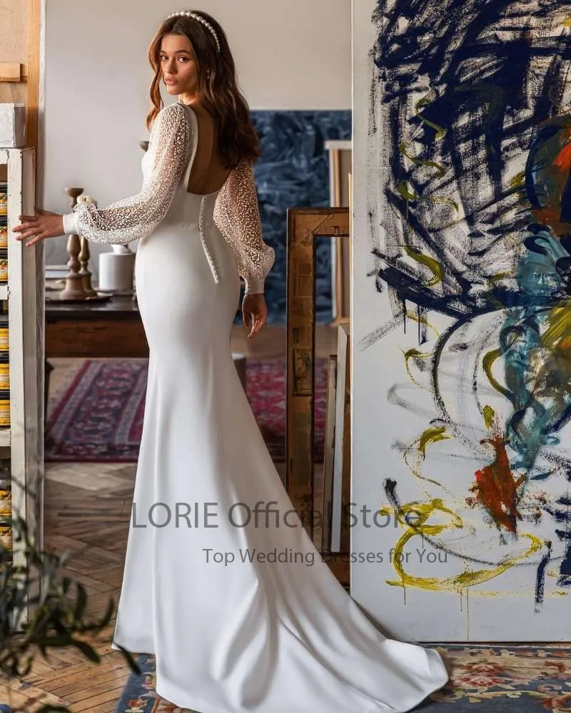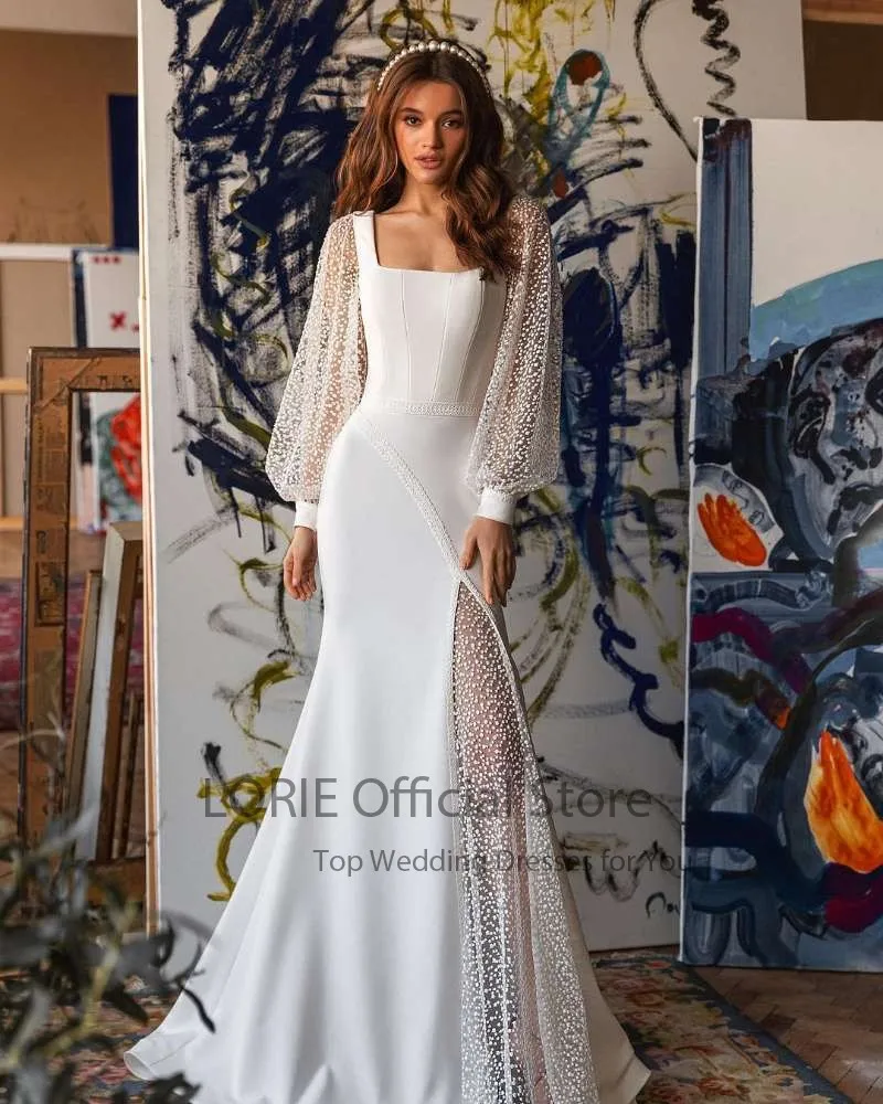 Свадебное платье с длинными рукавами-фонариками и квадратным вырезом