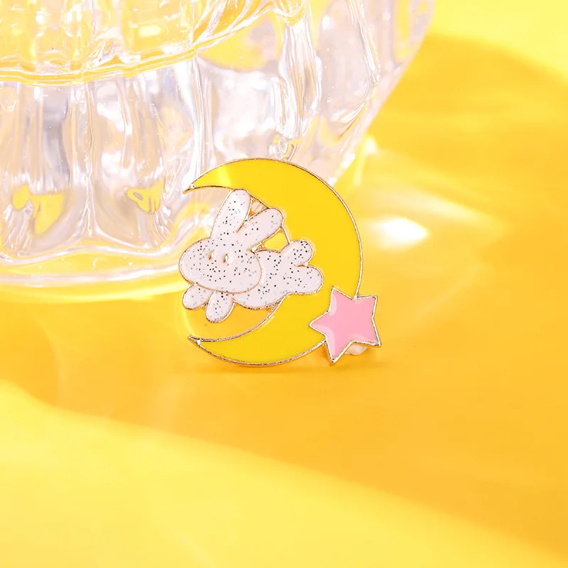 Очаровательный Кролик Луна эмаль булавки держать движущиеся Броши мотивирующая жизнь Цитата сумка шляпа лацкан