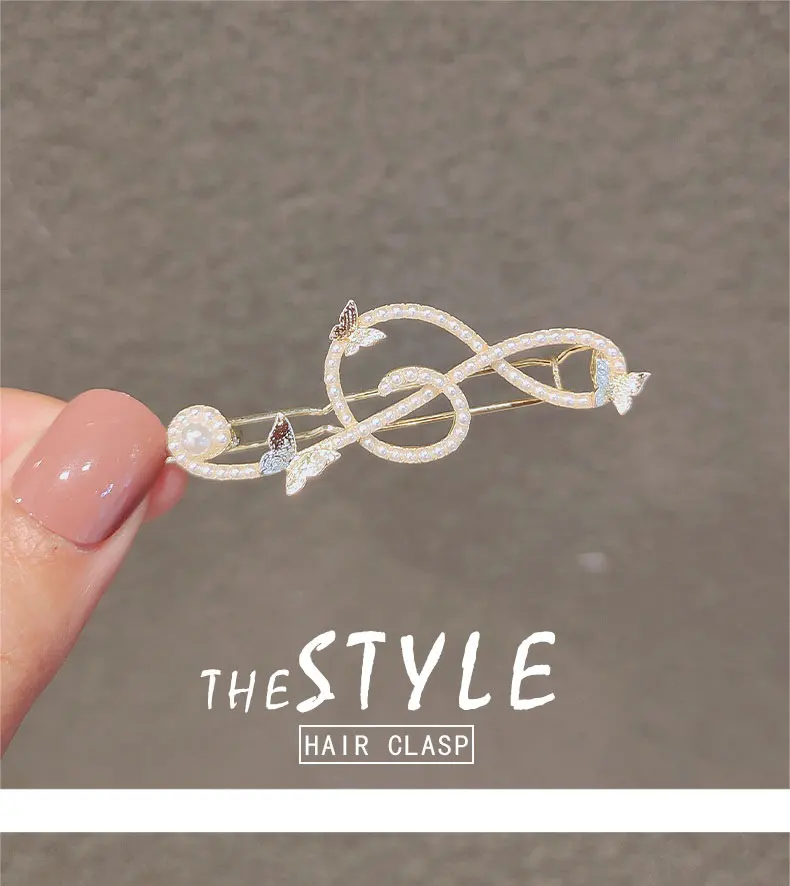 Заколка для волос женская металлическая, белая, с музыкальными нотами