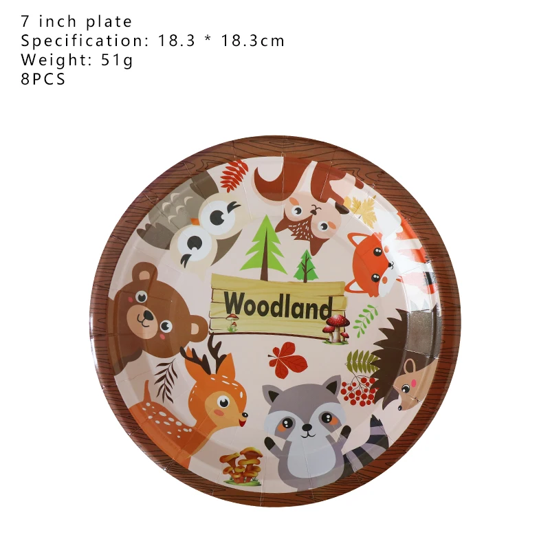 Одноразовая посуда с изображением лесных животных на день рождения, праздник, товары для детского шоу, бумажная тарелка, чашка, бумажный мешок для полотенец