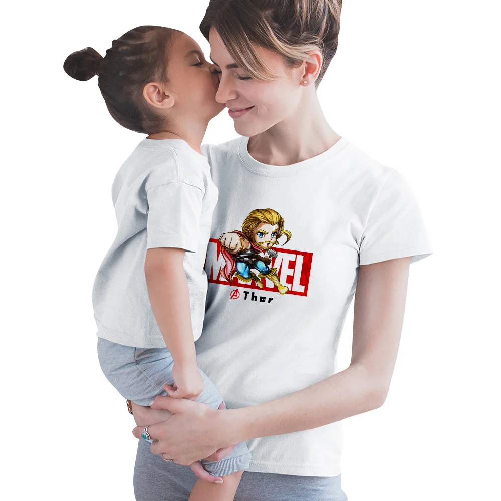 Одежда для мамы и ребенка, футболка с мультяшным принтом на день ро...